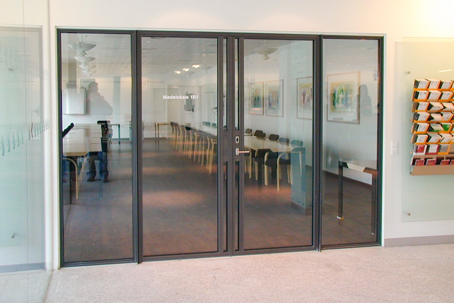 HSHansen tilbyder indvendige glasdøre og glasvægge til forskellige krav og funktioner - f.eks. til opdeling af kontoret, til mødelokaler eller til glasgange, hvor man gerne vil have udsynet, men ikke ønsker støj.