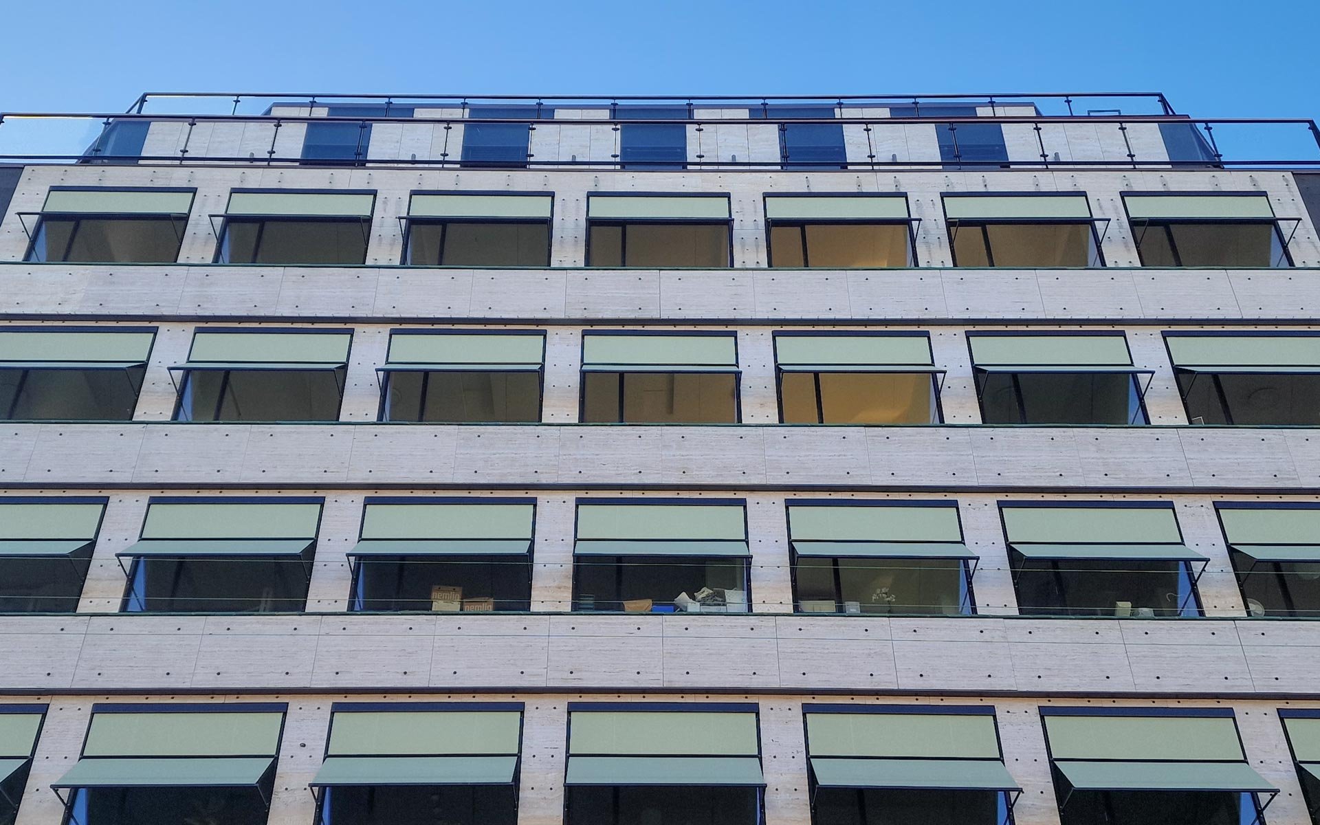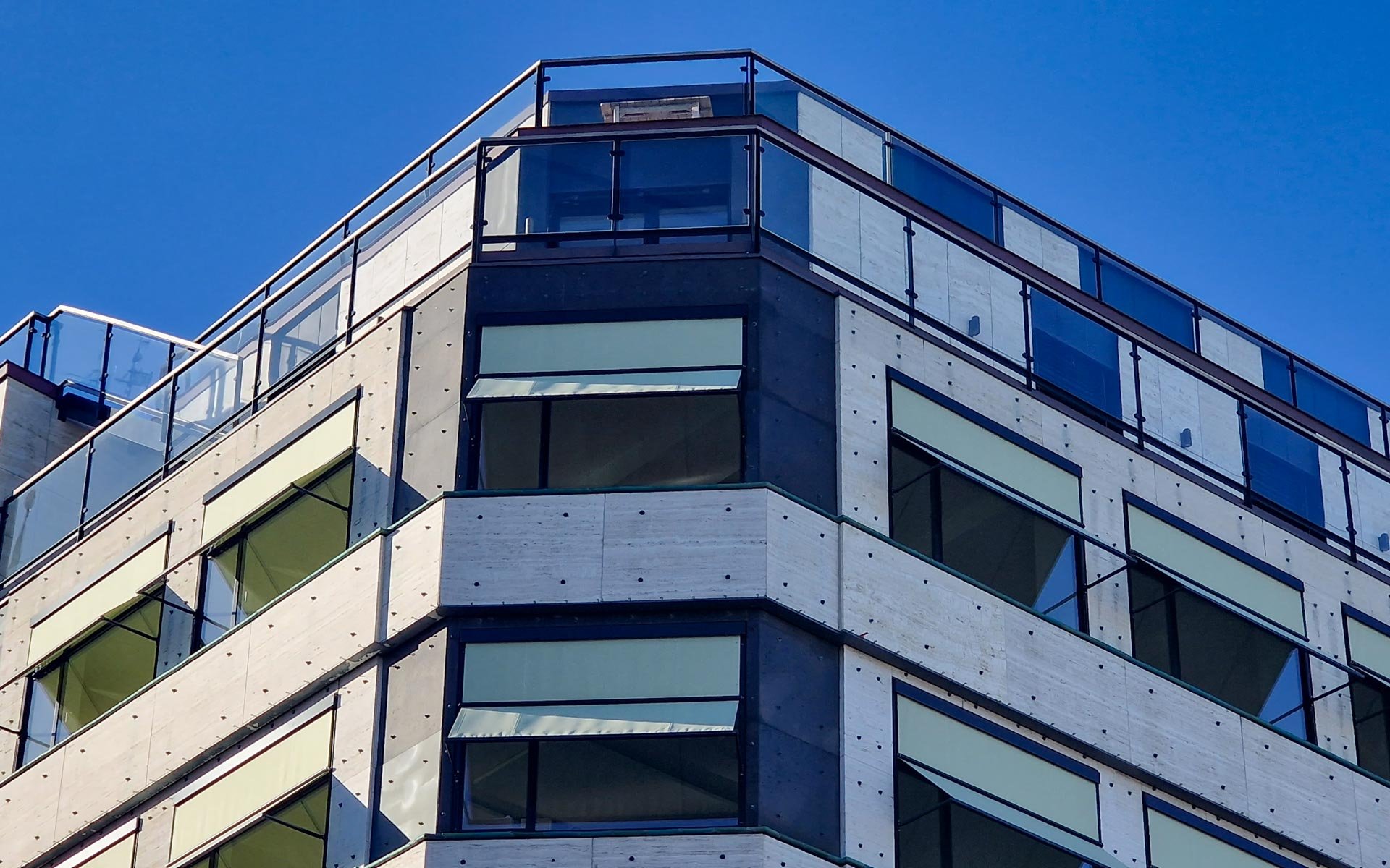 De klodsede vinduer fra 1980'erne er blevet udskiftet med nye HansenMillennium vinduer med slanke rammer, der minder om de originale stålvinduer. Der er også blevet monteret markiser, der både løser et indeklimaproblem og får facaden til at passe sammen med arkitekturen i området.