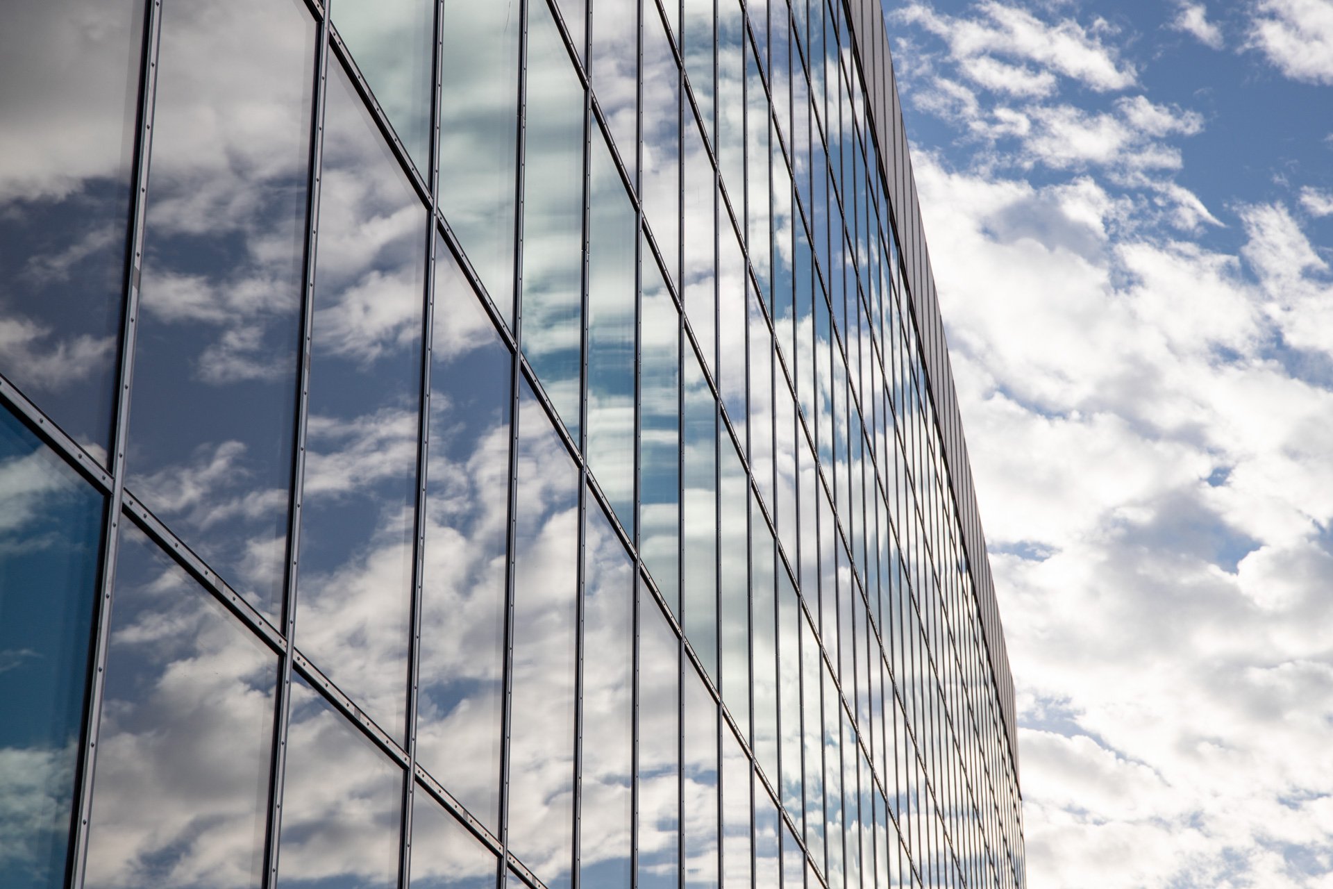 Kontorbygning og mellemgange udføres fuldt beklædt med HansenFasad glasalu facadesystem.