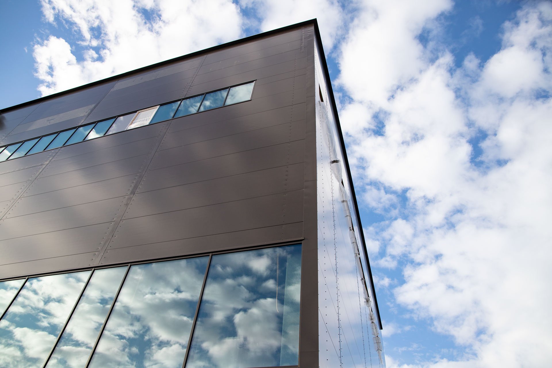 Facaderne på produktionsbygningen udføres i en blanding af Paroc 300mm sandwichpaneler og HansenFasad glasalu facadesystem. Sandwichpaneler beklædes delvist med strækmetalkassetter i anodiseret corten look.