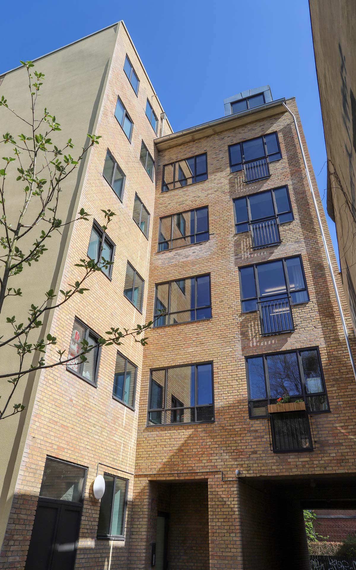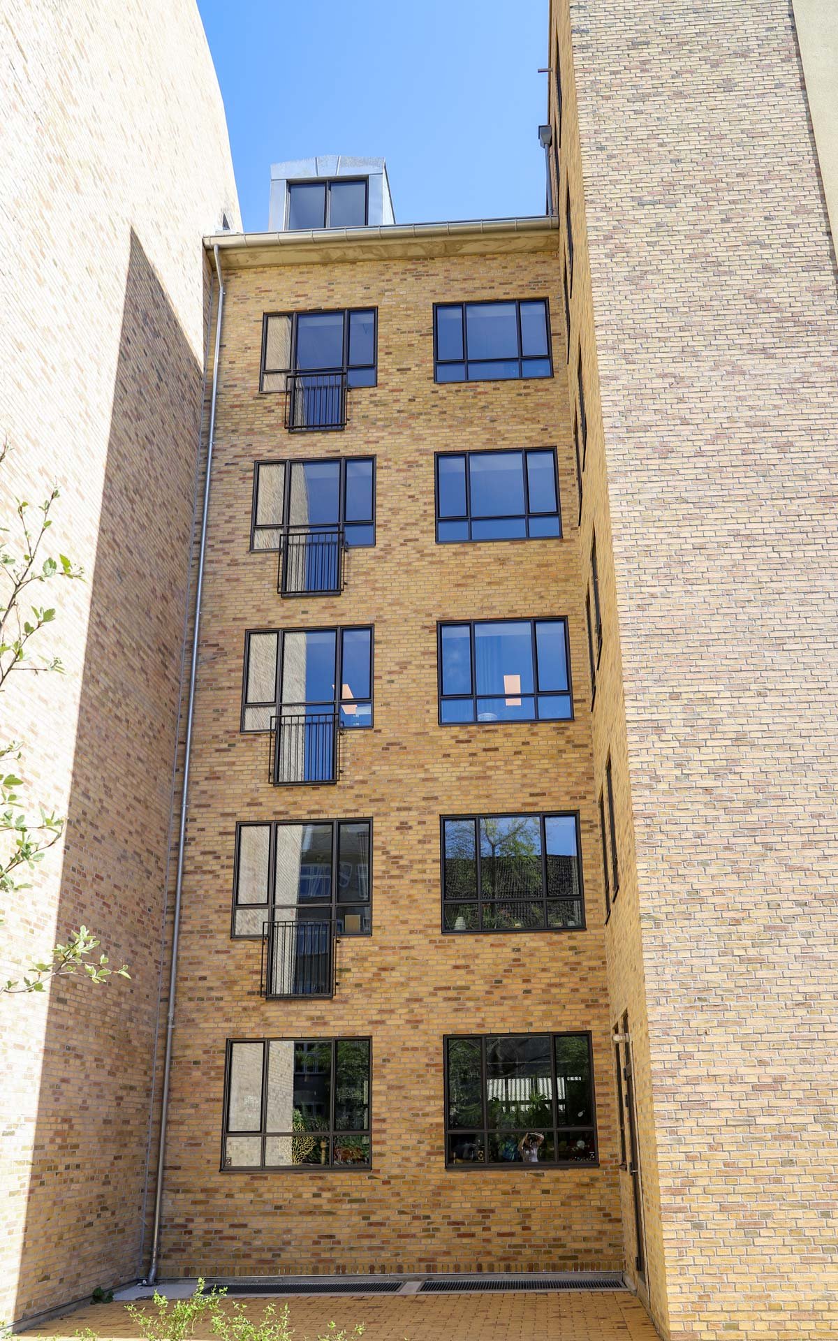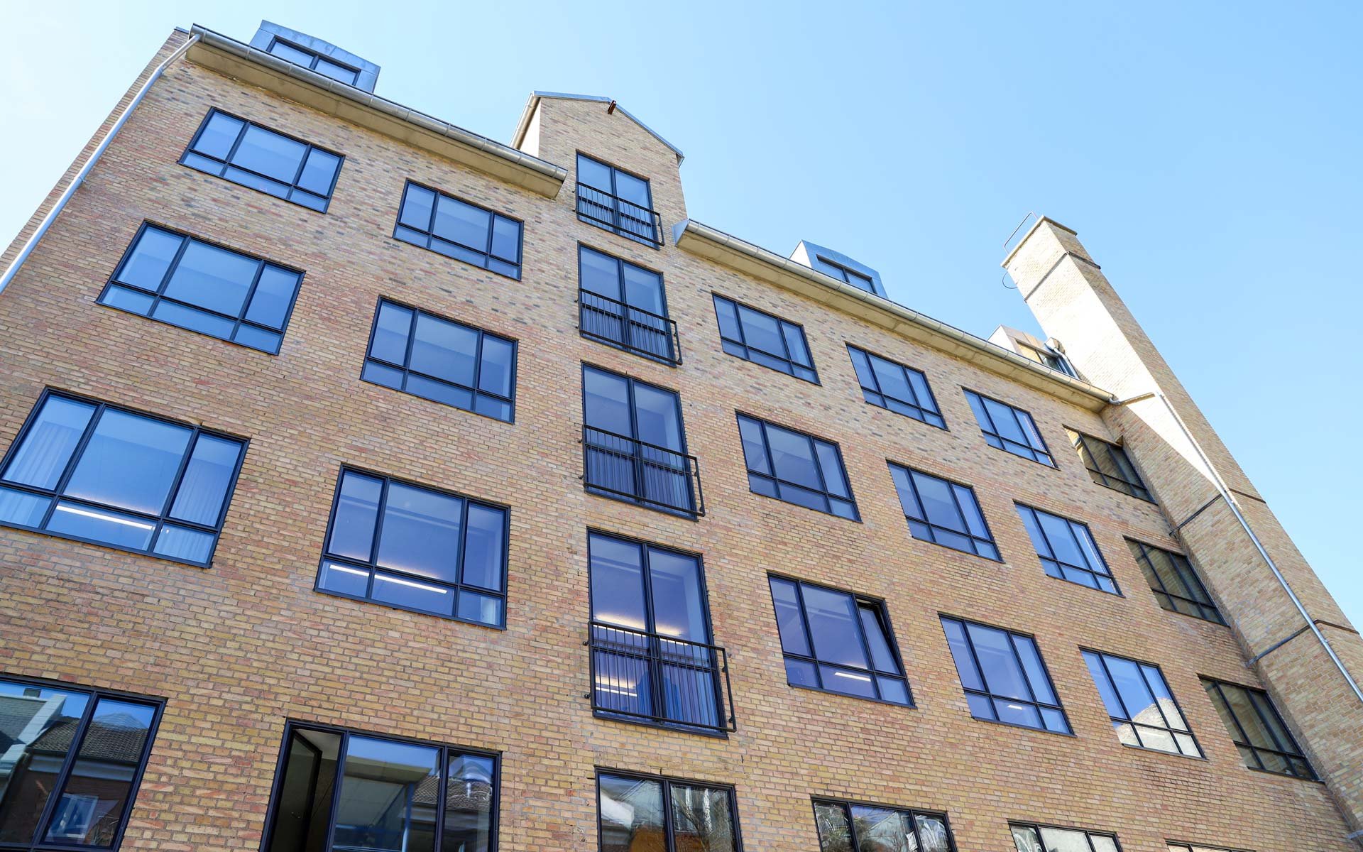 Den gamle fabriksbygning fremstår nu som moderne lejligheder, kontorlokaler, showroom og let produktion.