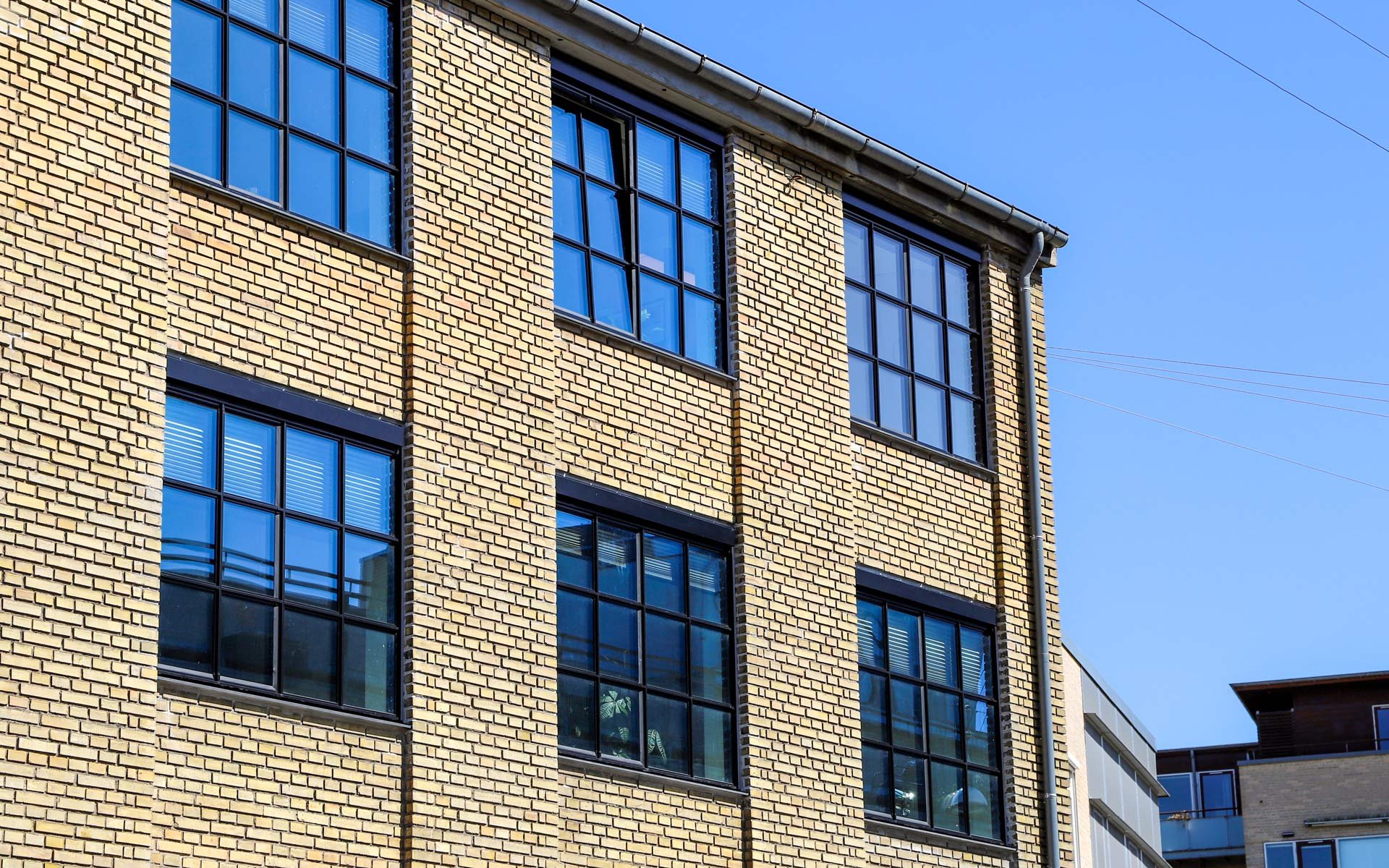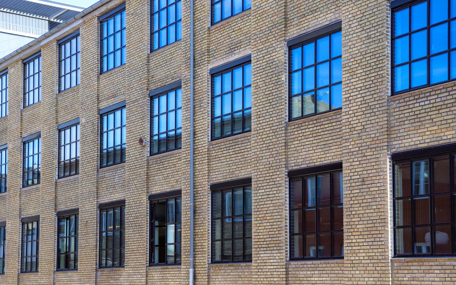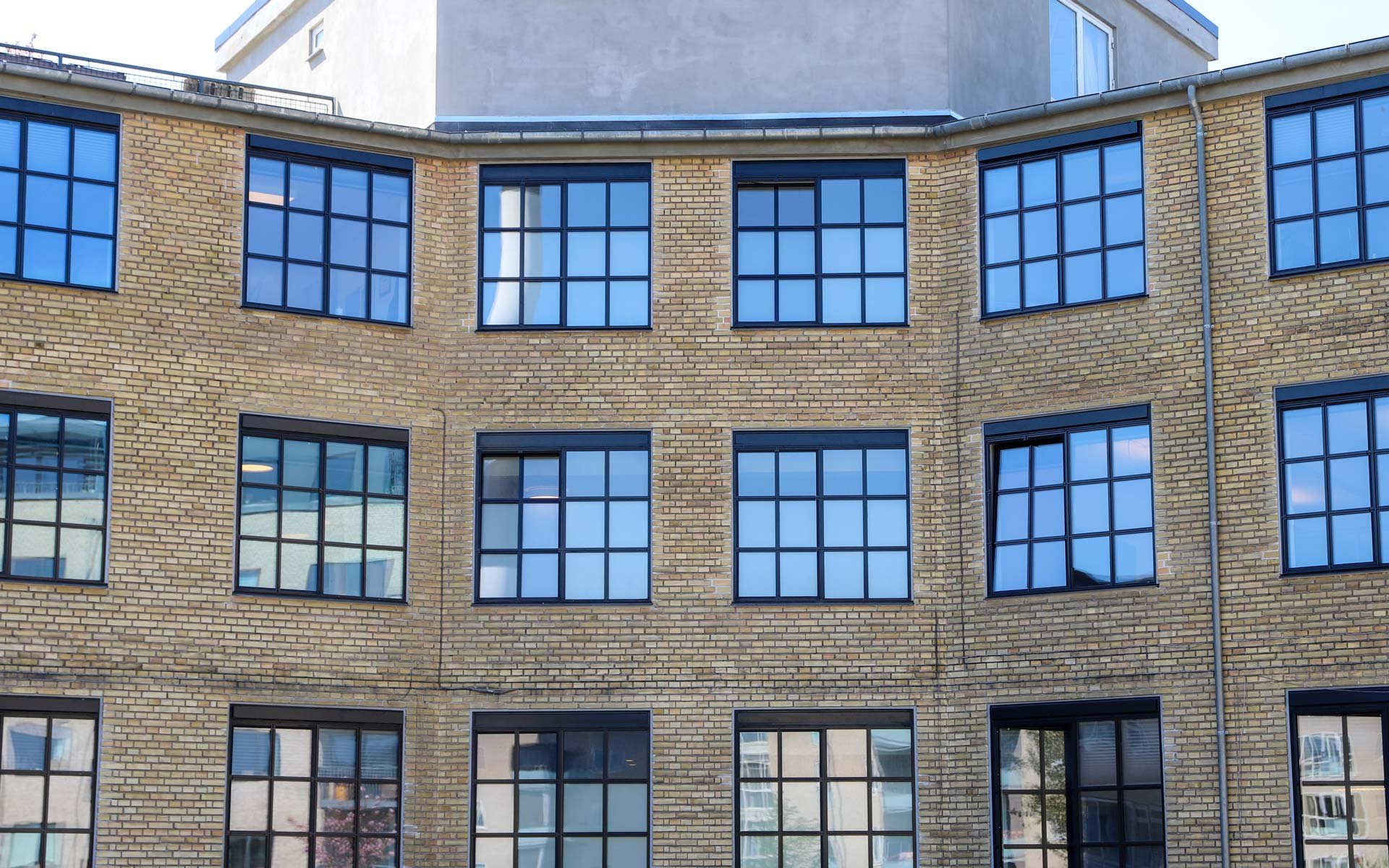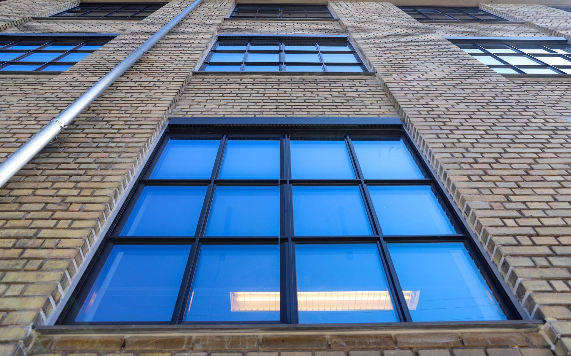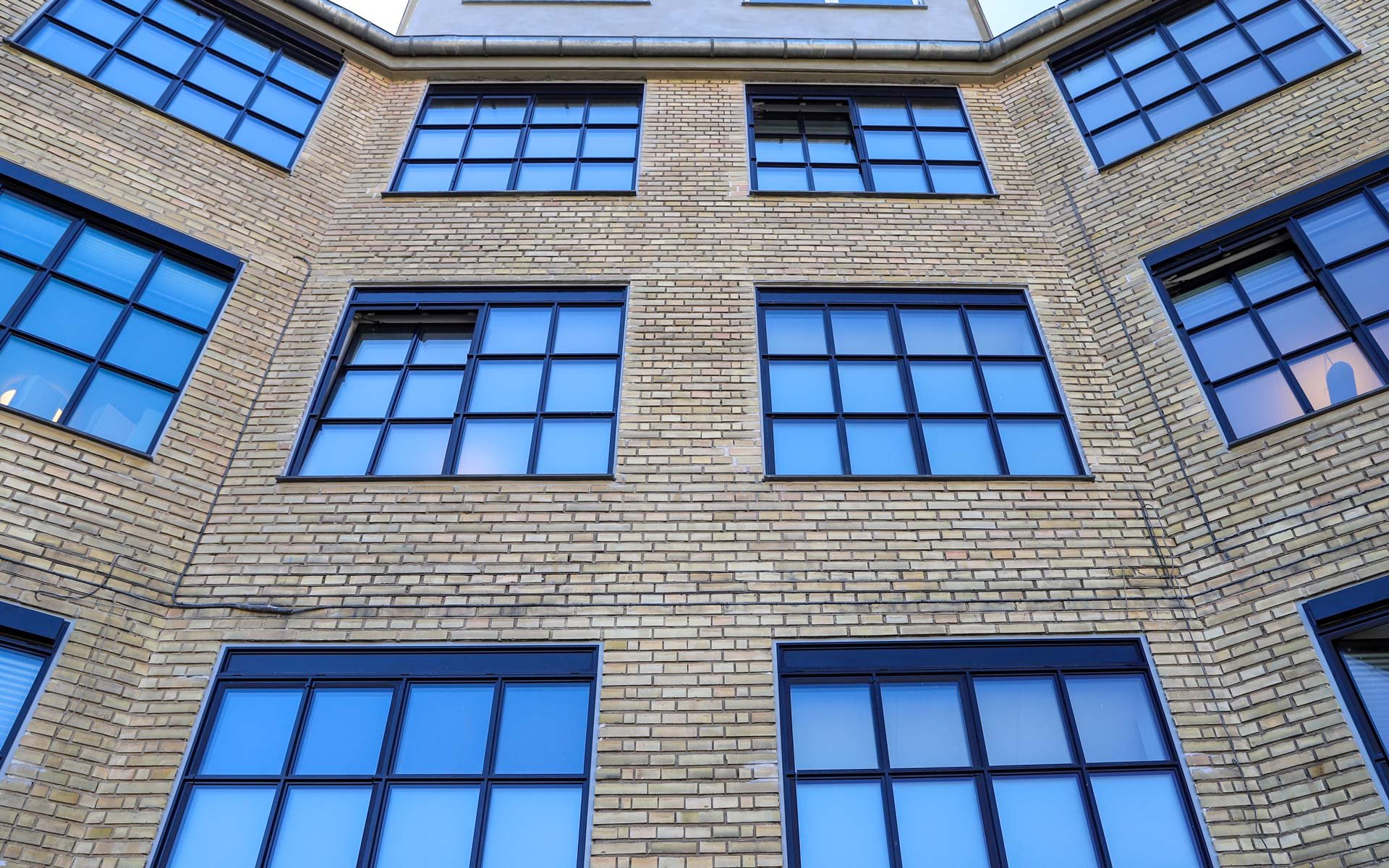 Sålbænkene under vinduespartierne er udført i sort skifer, som er et naturligt og langtidsholdbart materiale, som fuldender det æstetiske og industrielle udtryk i kombination med smalle sprosser og rammer.