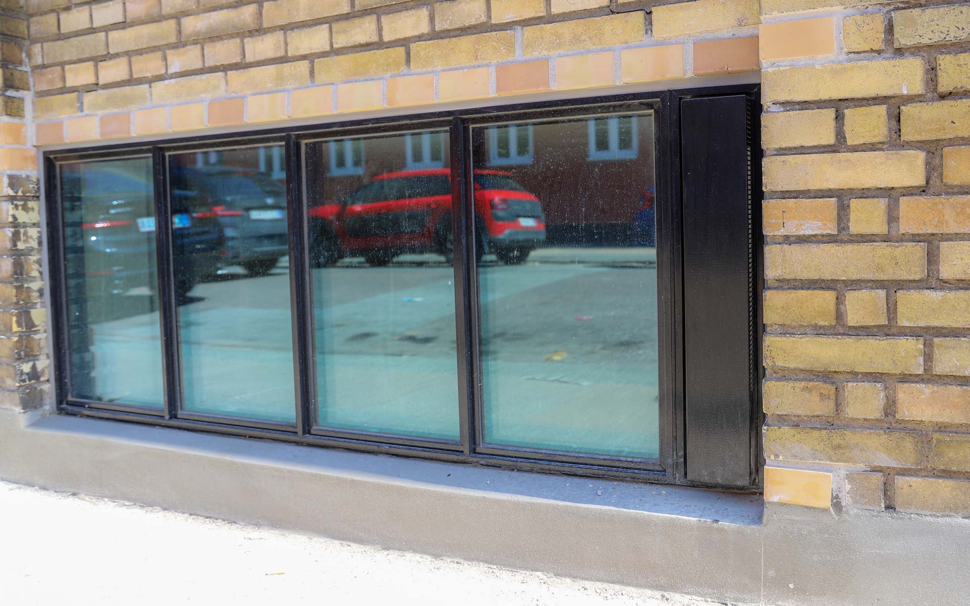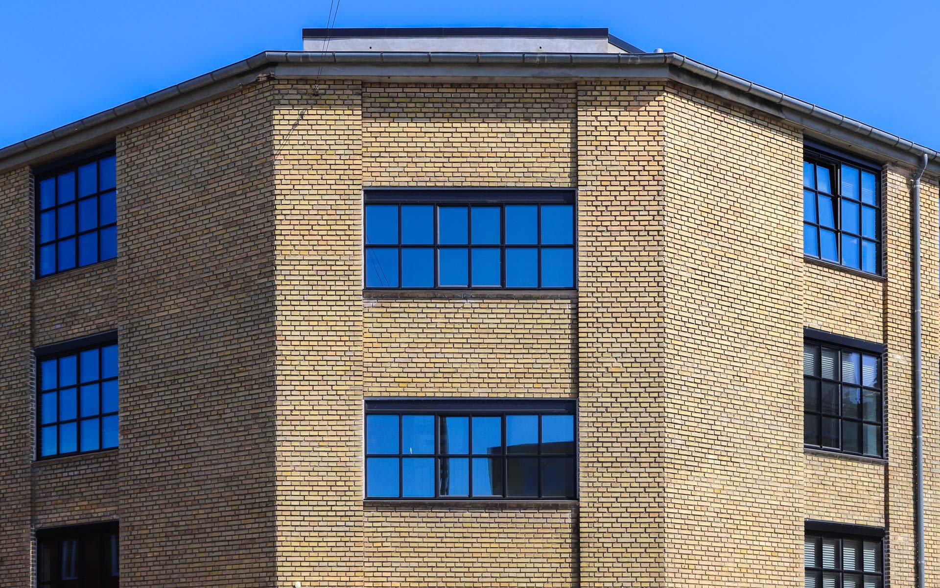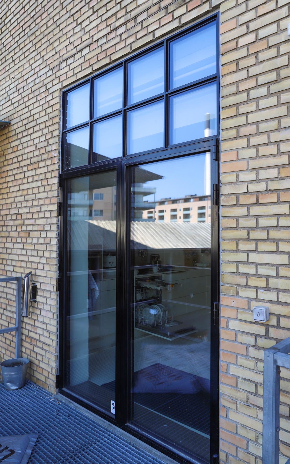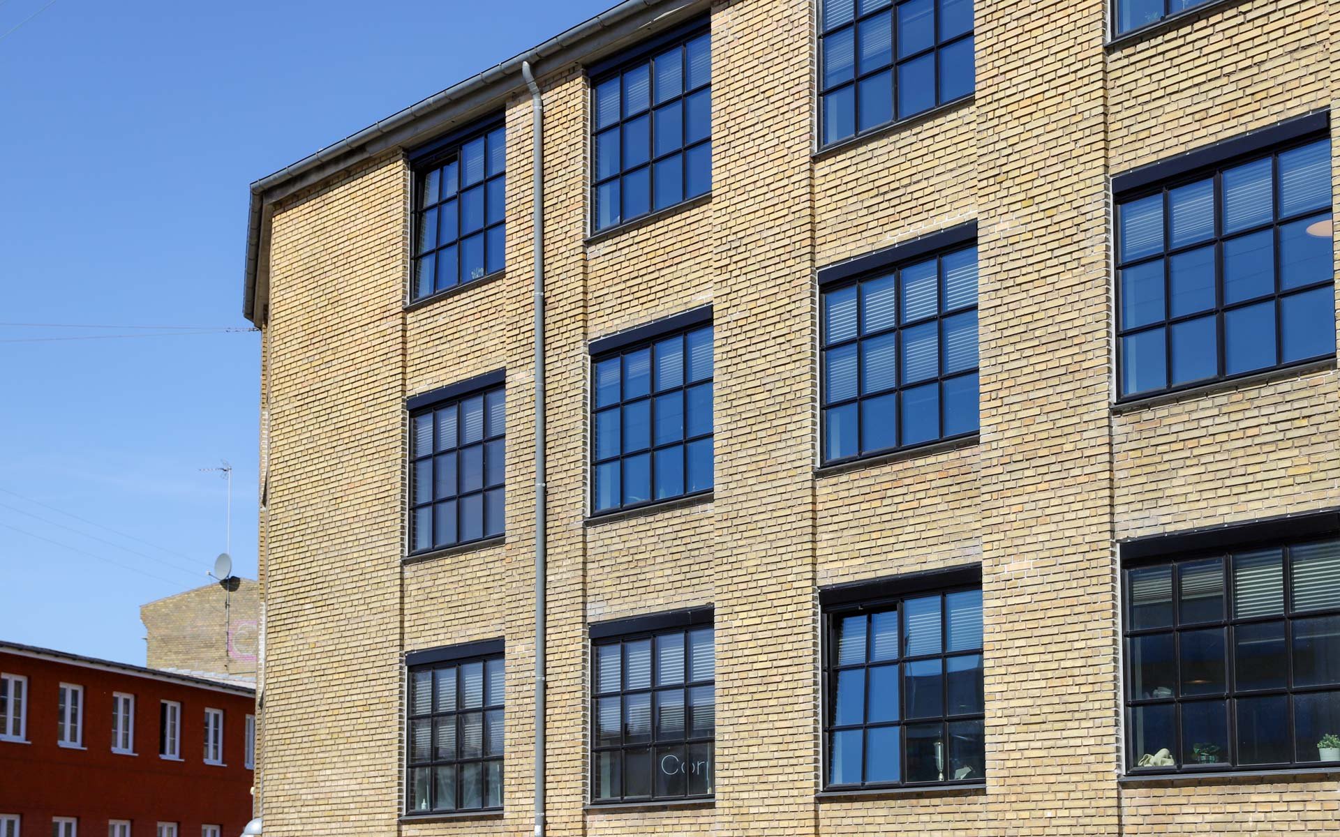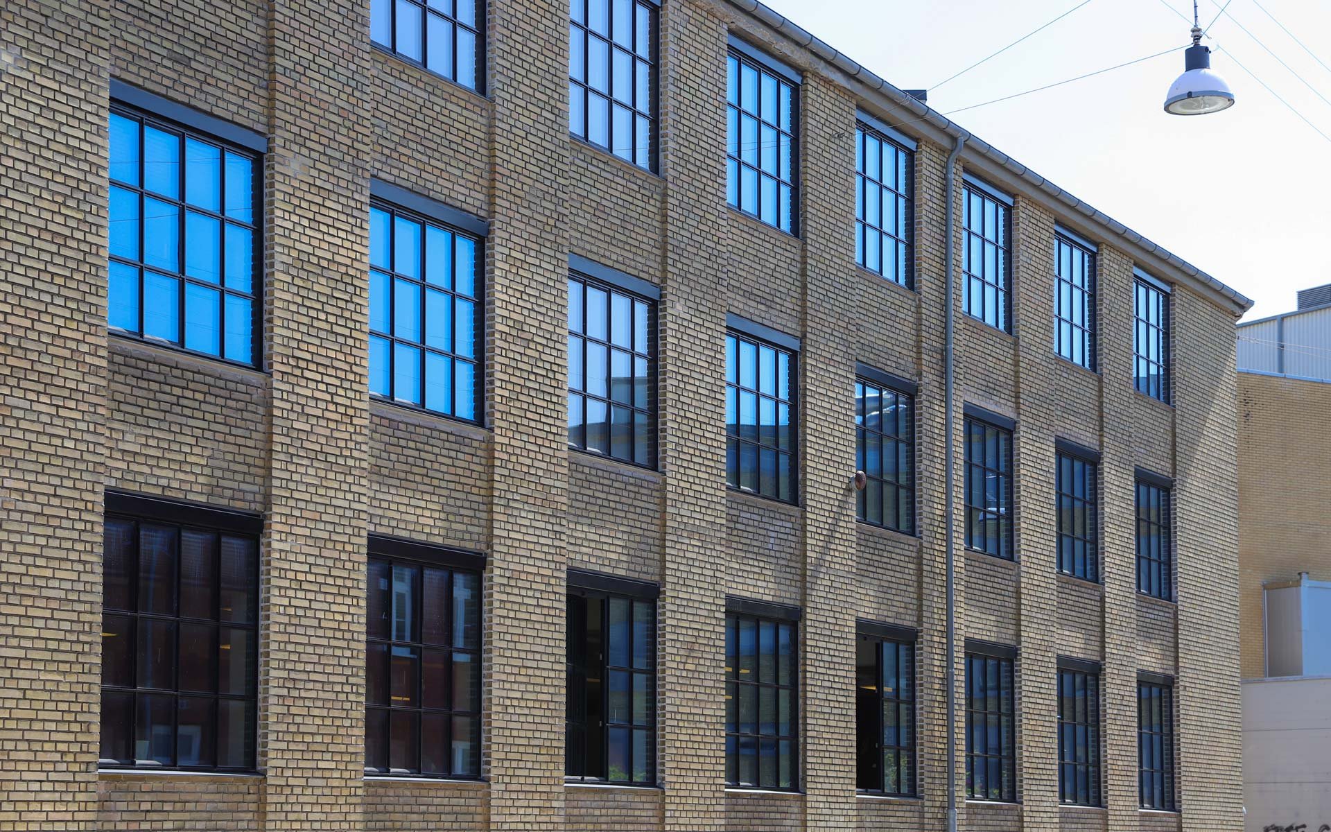 Sålbænkene under vinduespartierne er udført i sort skifer, som er et naturligt og langtidsholdbart materiale, som fuldender det æstetiske og industrielle udtryk i kombination med smalle sprosser og rammer.