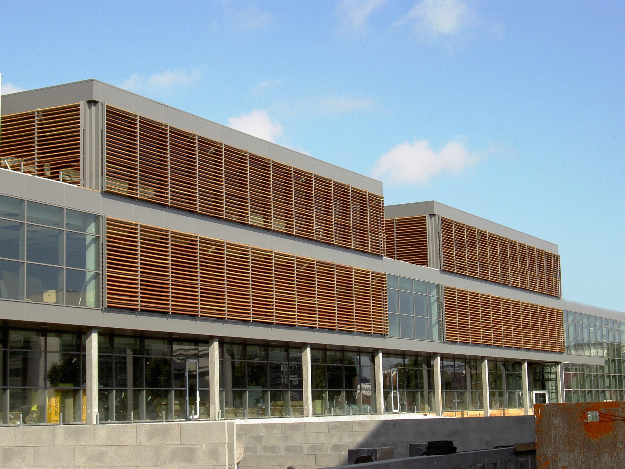 Den tilhørende administration er udført som nybyggeri med curtain walls i HansenFasad.