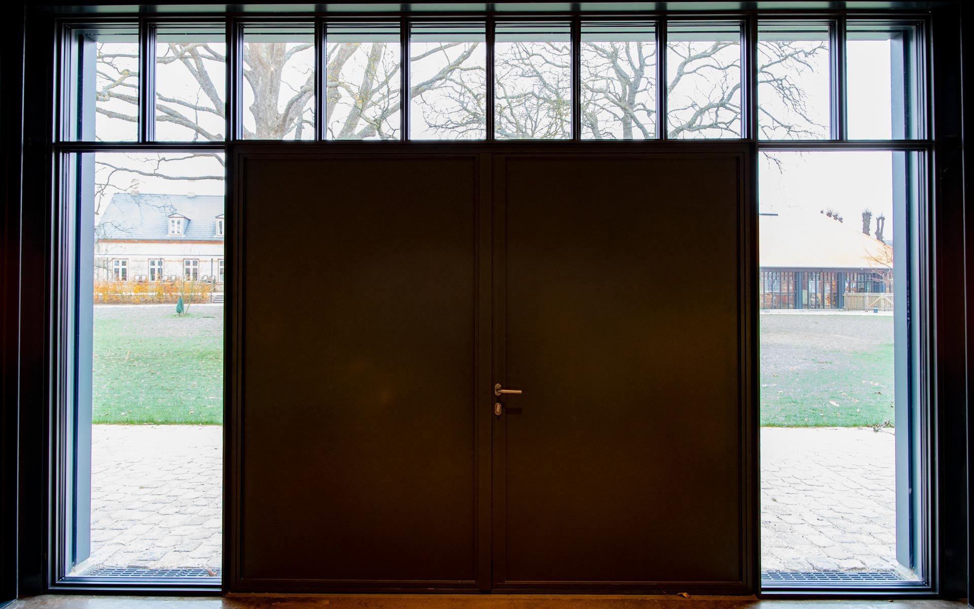 På facaden mod øst er der to døre i bredden 3 meter, som er udført som specielløsning med sænketætningsbundstykke, ekstra hængsler samt forstærkning af døren, så de kan fungere til indkørsel af biler.