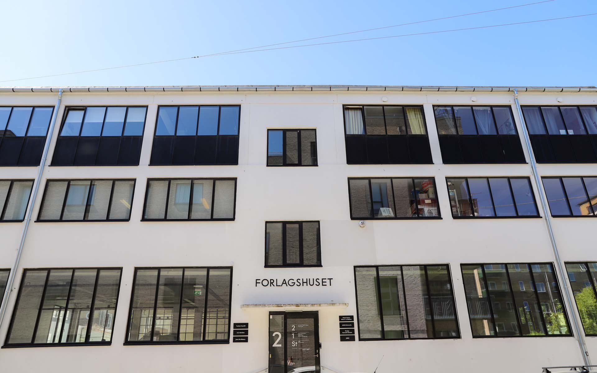 Forlagshuset er beliggende i Nordvest - en tidligere industribydel i udkanten af København, som de seneste år har gennemgået betydelig udvikling.