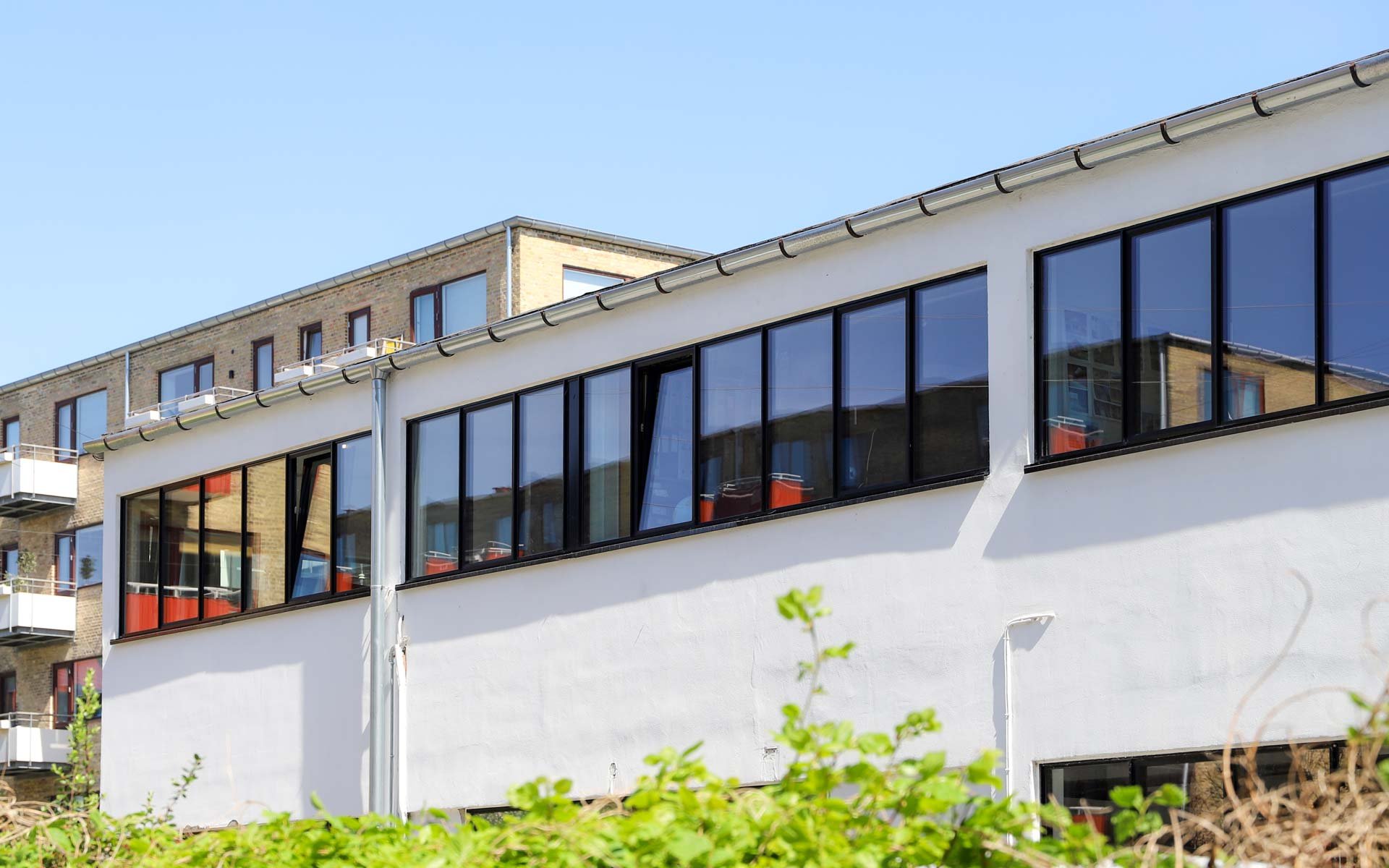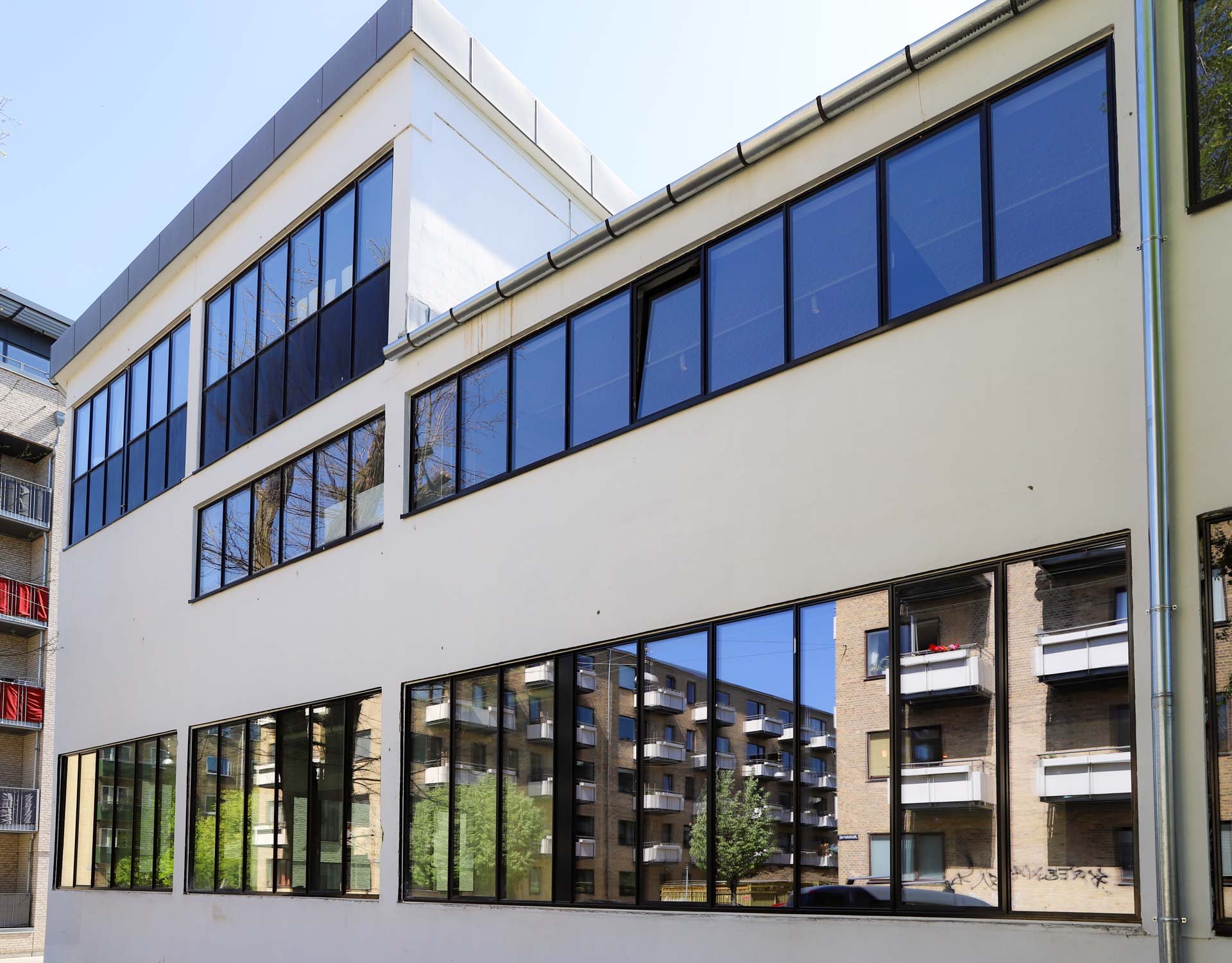 Bygningen er en karakteristisk hvidpudset struktur med markante, sorte vinduespartier, som tidligere fungerede som hjemsted for forlaget og trykkeriet Gyldendal. De oprindelige vinduer var stålvinduer, og da man ønskede at bevare dette udtryk, valgte man HansenMillennium, som kunne opfylde kravet om autencitet og oprindelighed i vinduesdesignet.