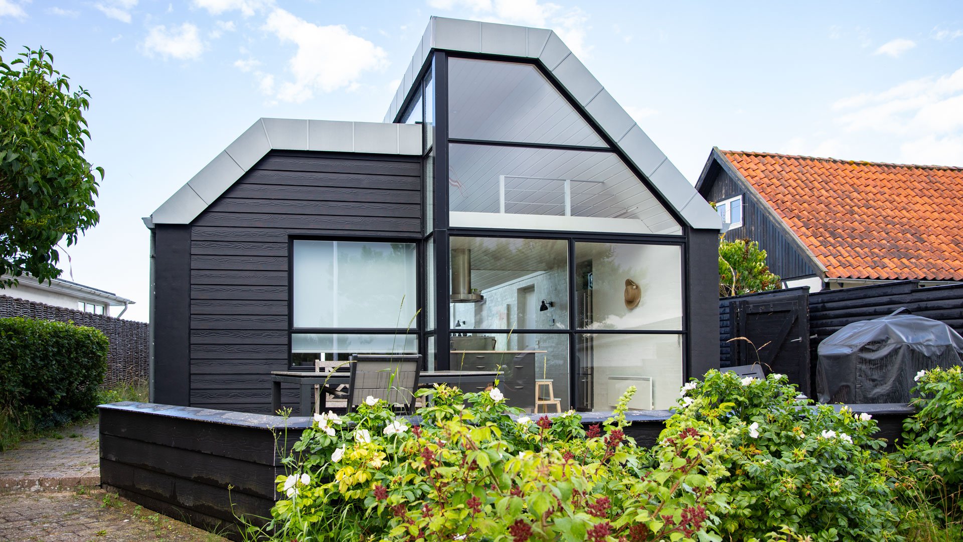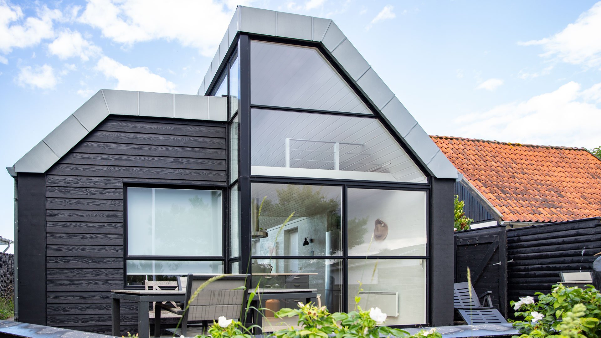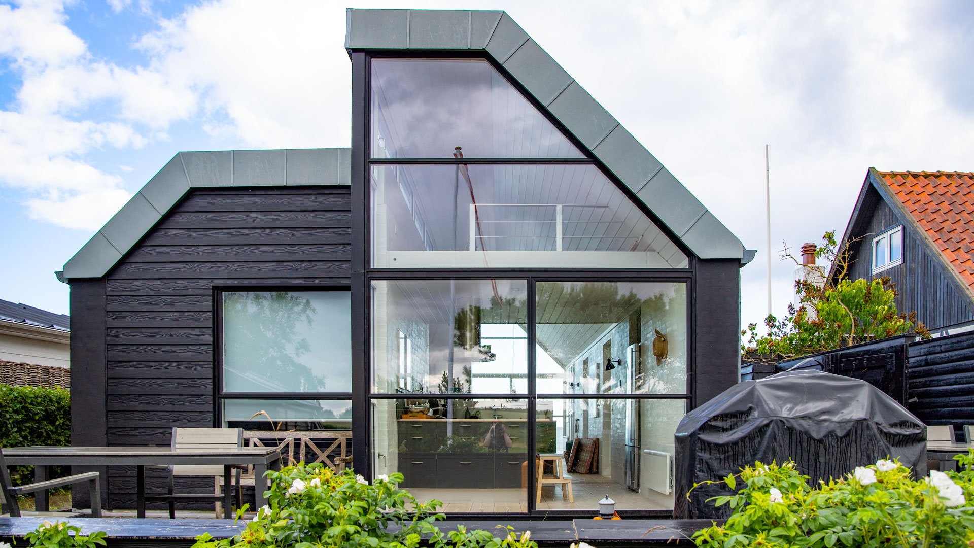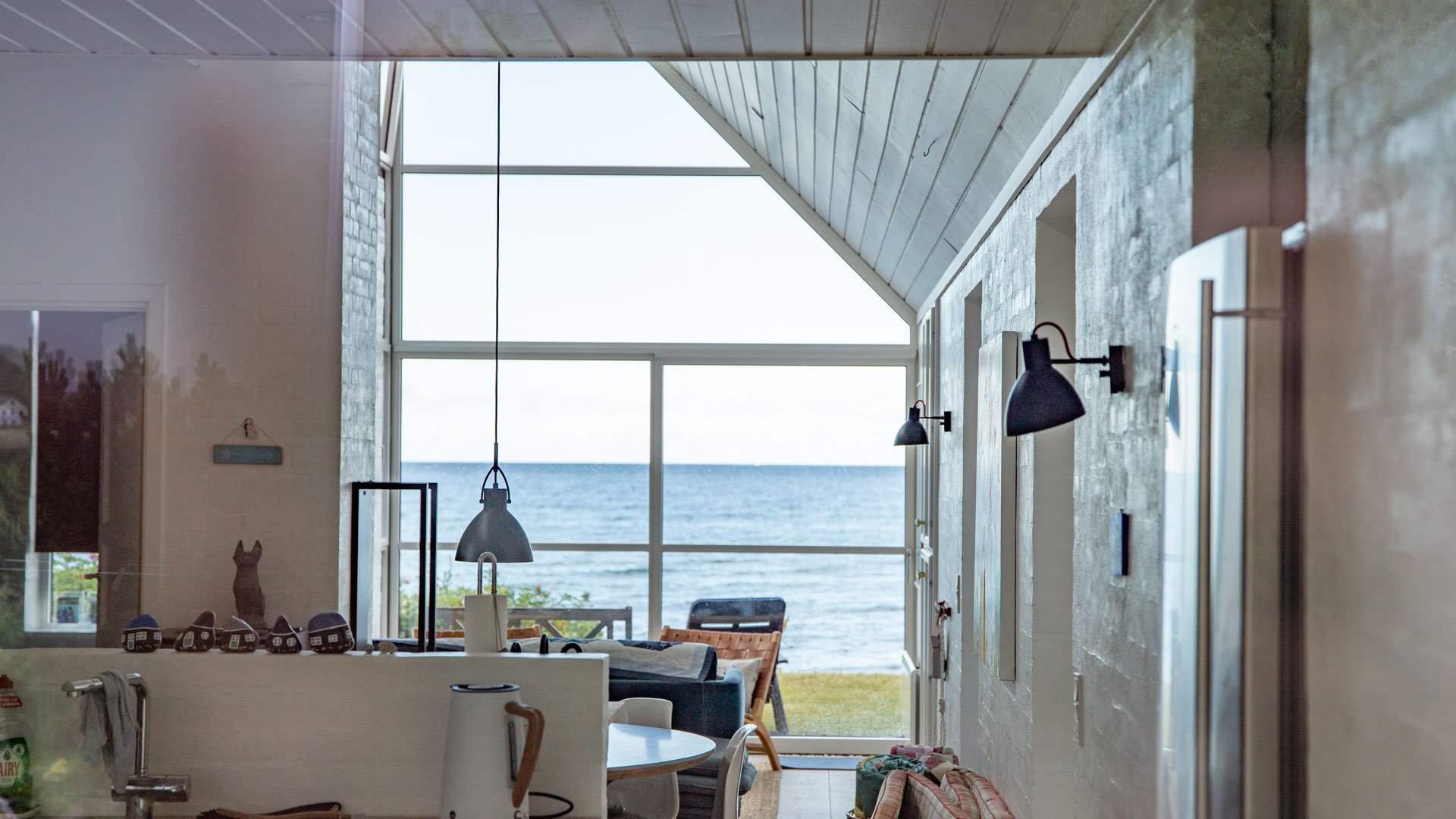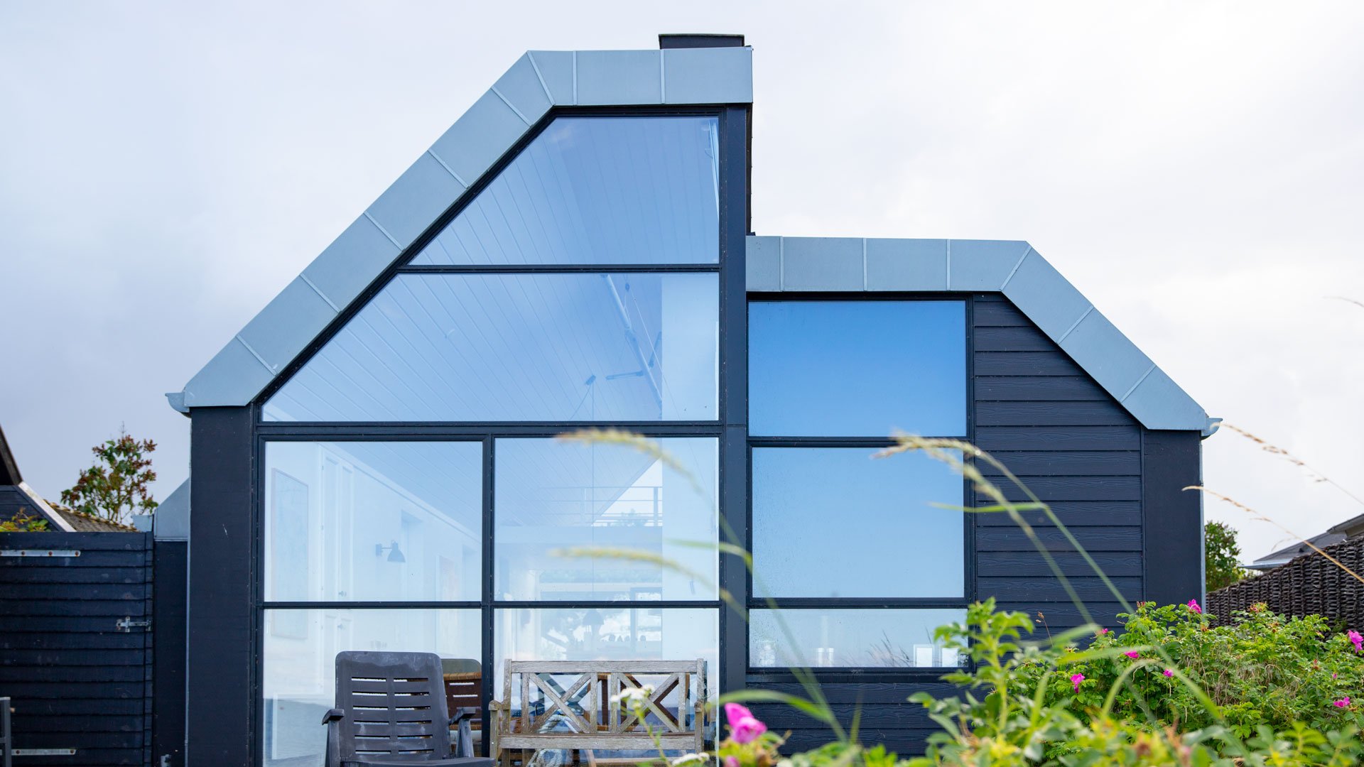 Lækkert fritidshus med store vinduespartier, så udsigten kan nydes optimalt.