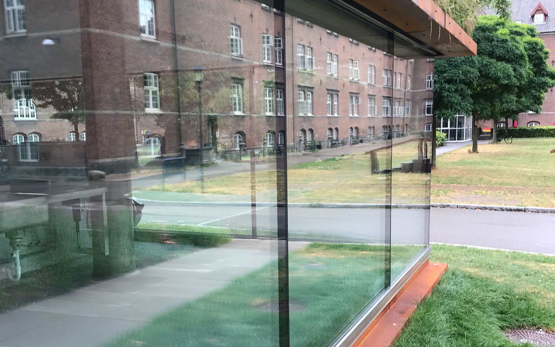 De store HansenFasad glaspartier lukker lyset og naturen ind i rummet og gør bygningen åben. Sammenhængen til den gamle bygning er skabt ved hjælp af en enkel og elegang glasgang.
