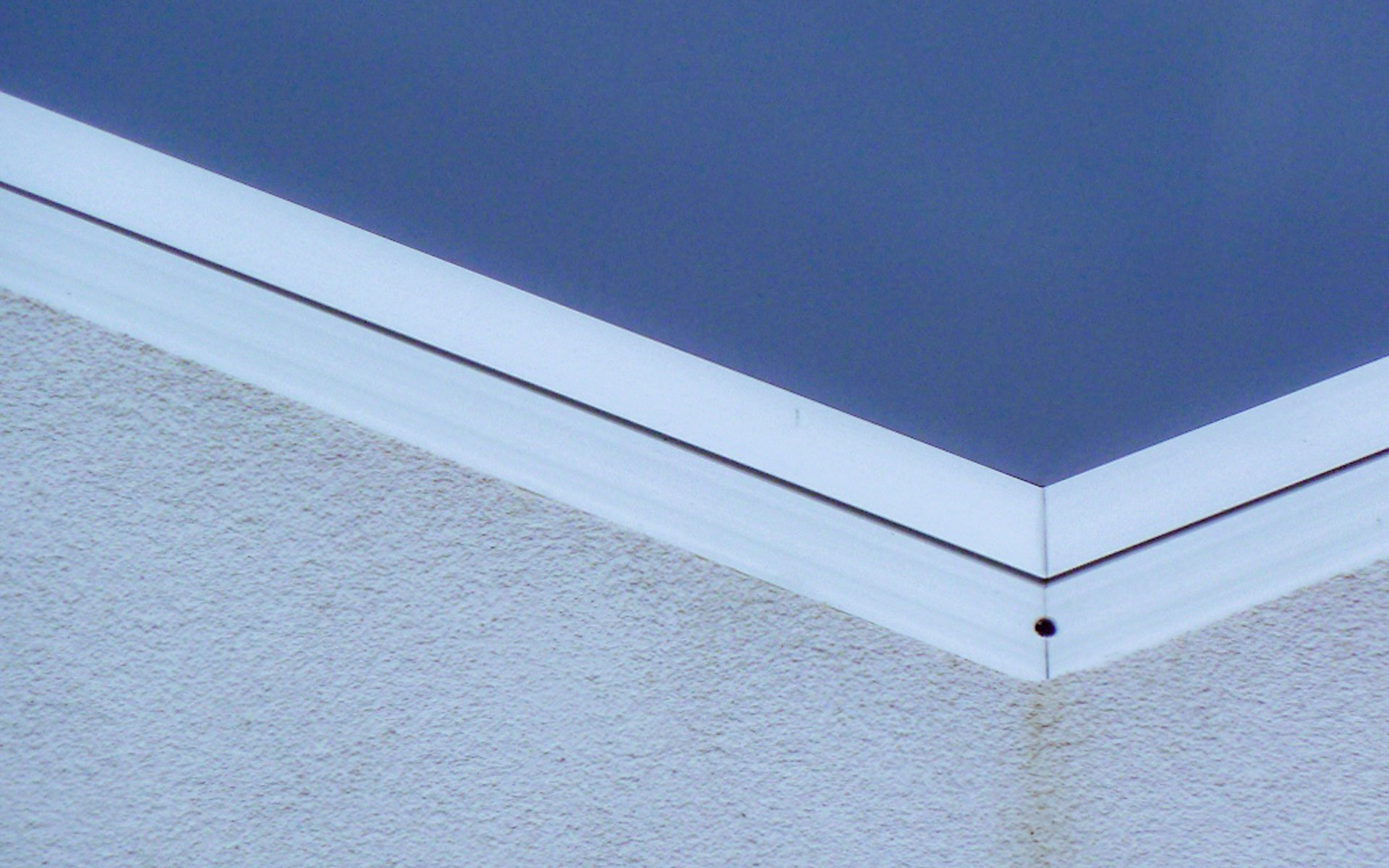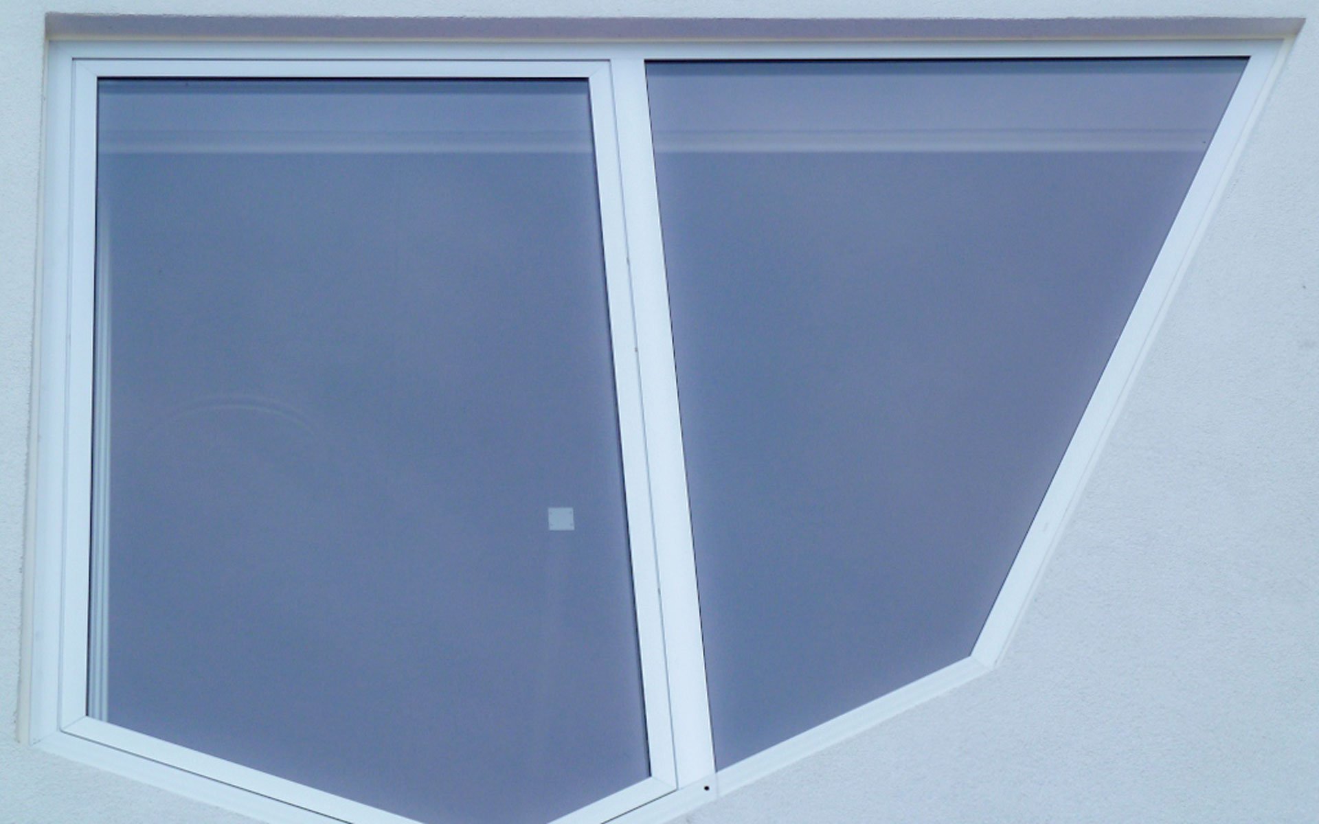 Bemærk dræn presset i profilerne med diskrete huller i vinduer med spids afslutning nedad. Dette sikrer korrekt afdræning og trykudligning.
