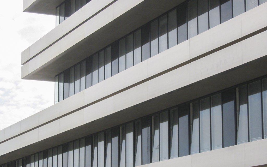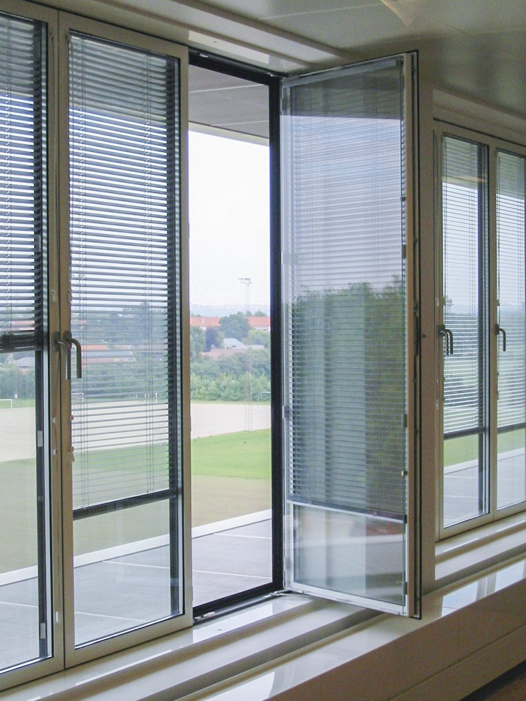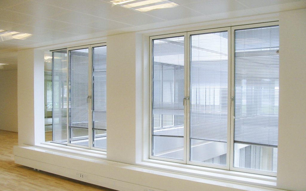 1.200 vinduer med 1+2: enkeltlagsglas udvendig, integreret persienne og lavenergi termorude.