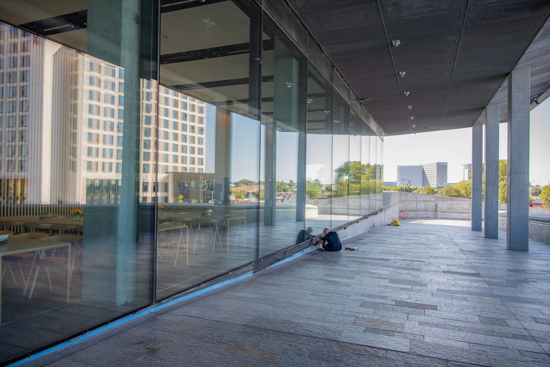 "Det har vi løst ved at lade to gangbroer gå hen over vinduet, som kan modstå trykket. Og vi har anvendt trelagsglas i så store dimensioner, at der kun er få fabrikker i Europa, som kan producere det. Så alt glasset til panoramaet er transporteret fra Østrig", fortæller Christian Tang.