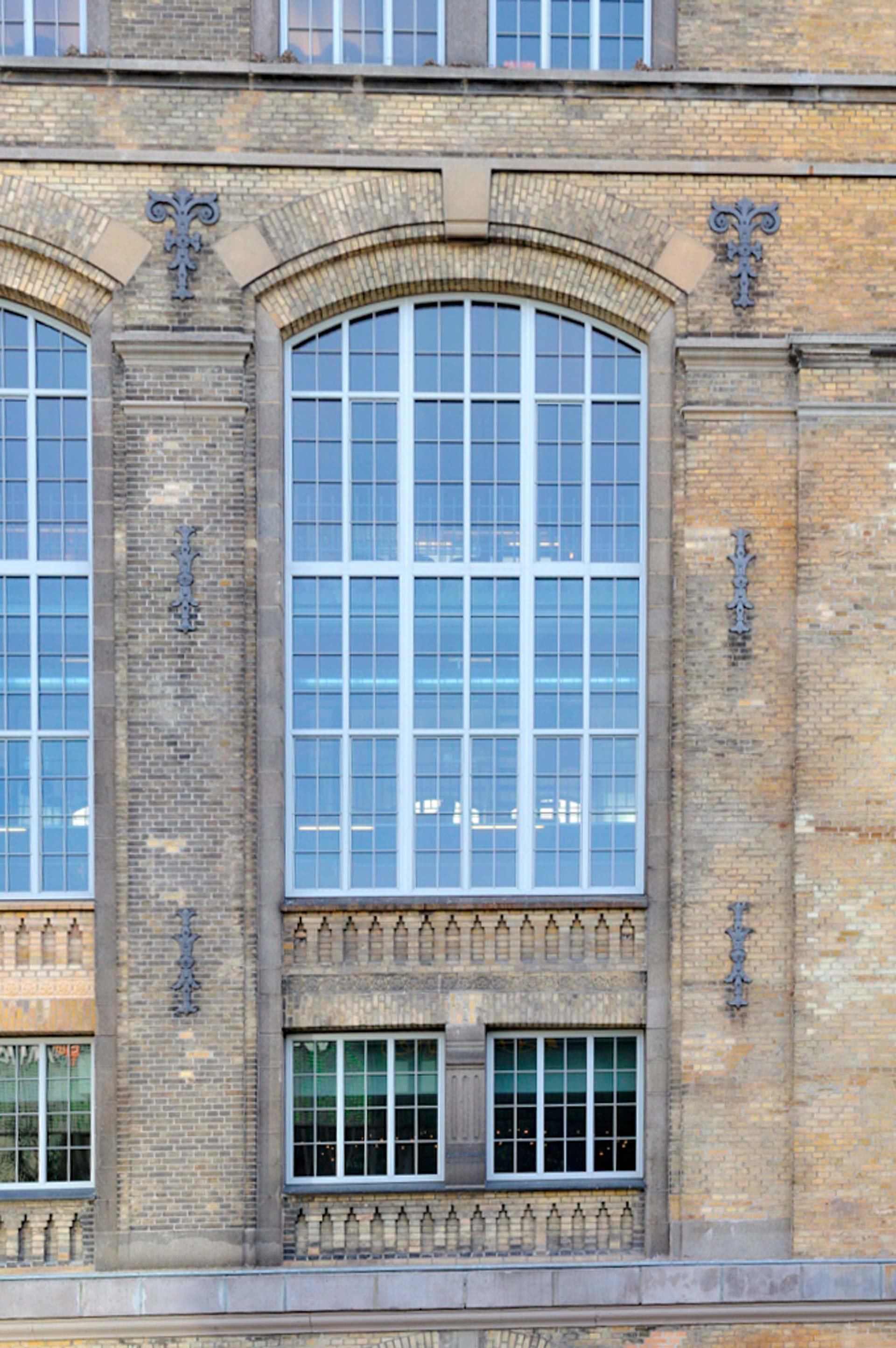 Tidligt i forløbet stod det klart for bygherren, at der kunne spares penge ved at fremstille helt nye identiske vinduer i aluminium frem for en renovering af de eksisterende palævinduer.