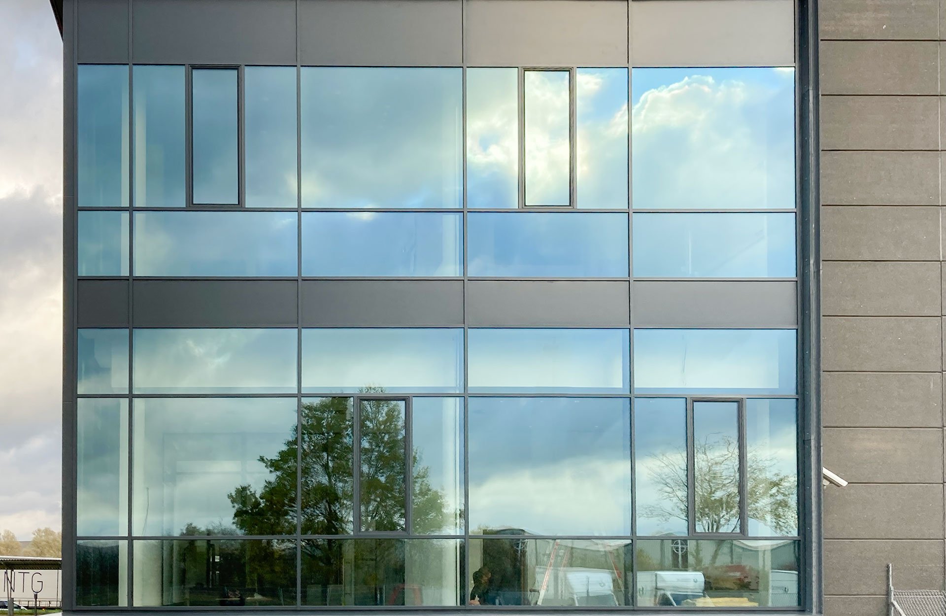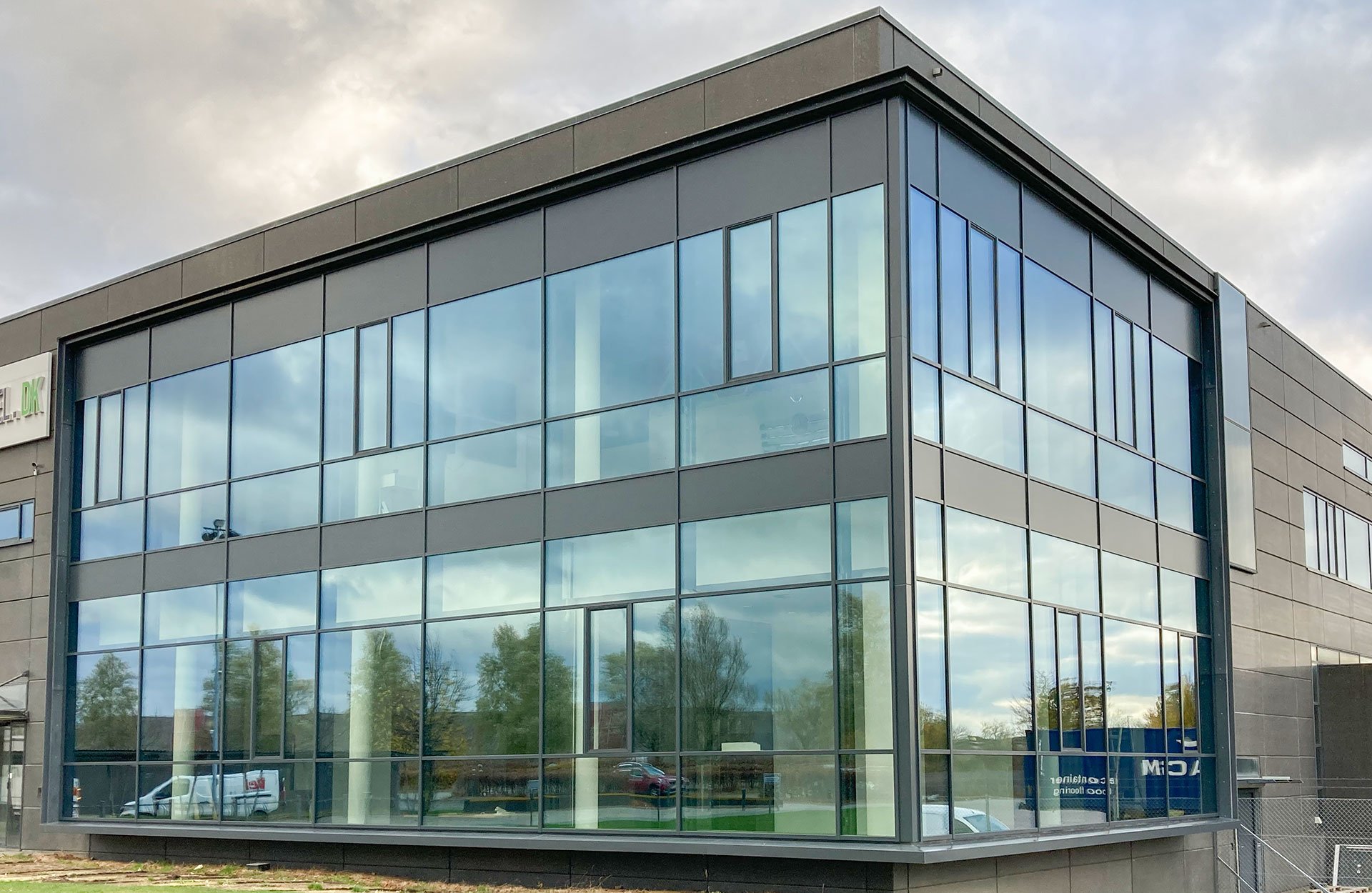 Der er udover HansenFasad benyttet HansenMillennium dreje/kip-vinduer og der er monteret solreflekterende 3-lags glas.