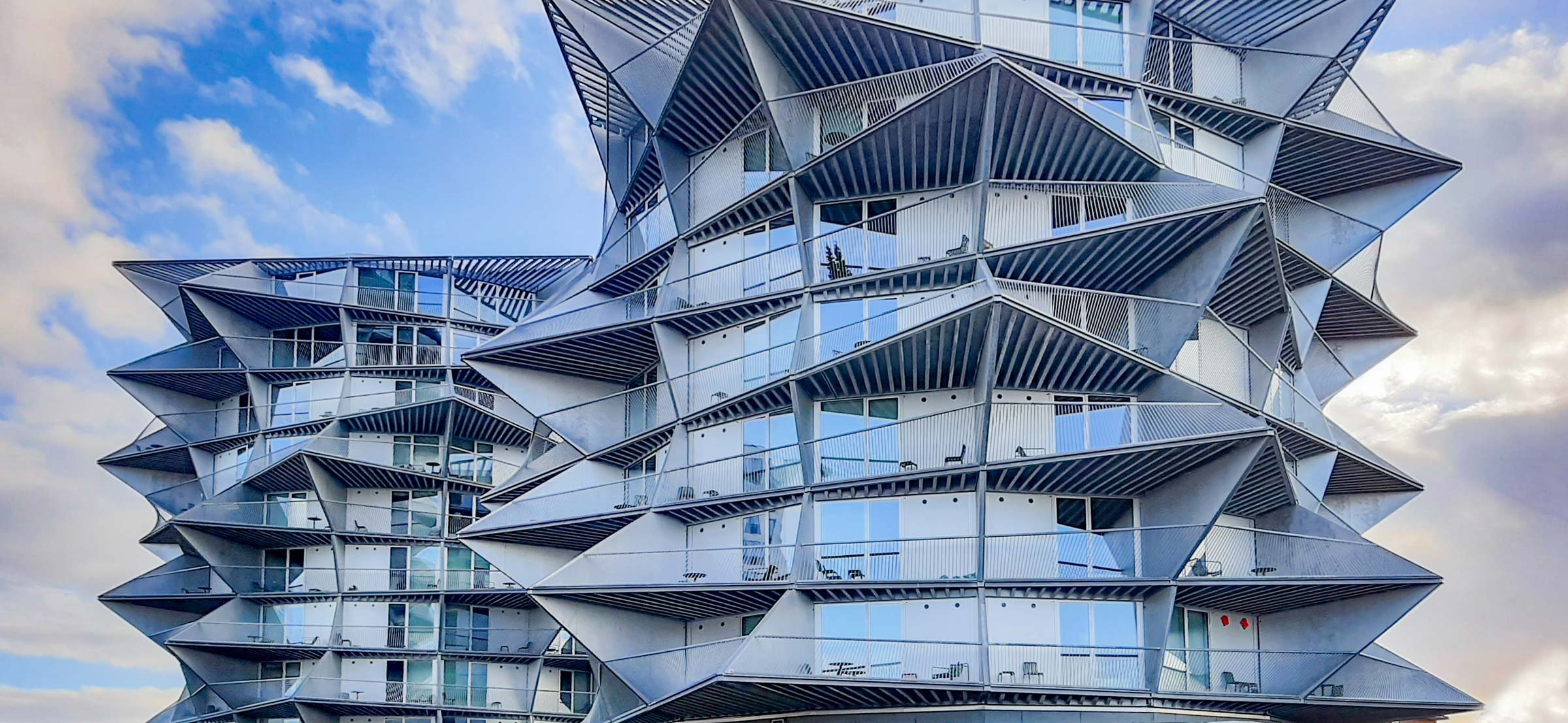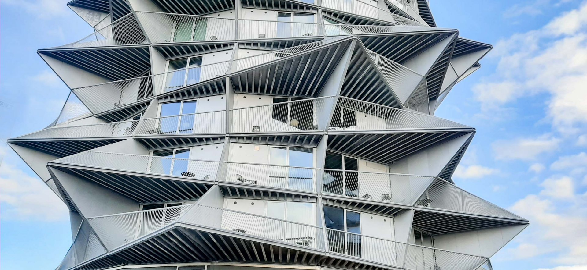 While the displacements in the floors visually give variation in the facade, they at the same time take the breath away from the wind so that the residents can stay on the balconies.
