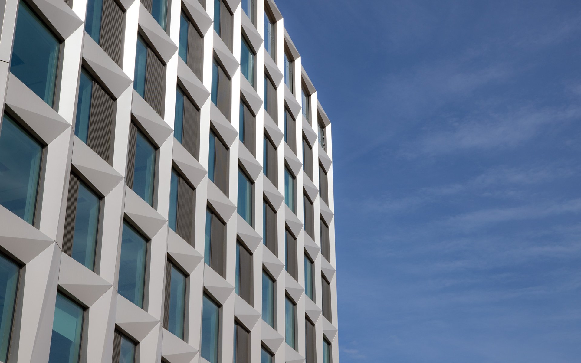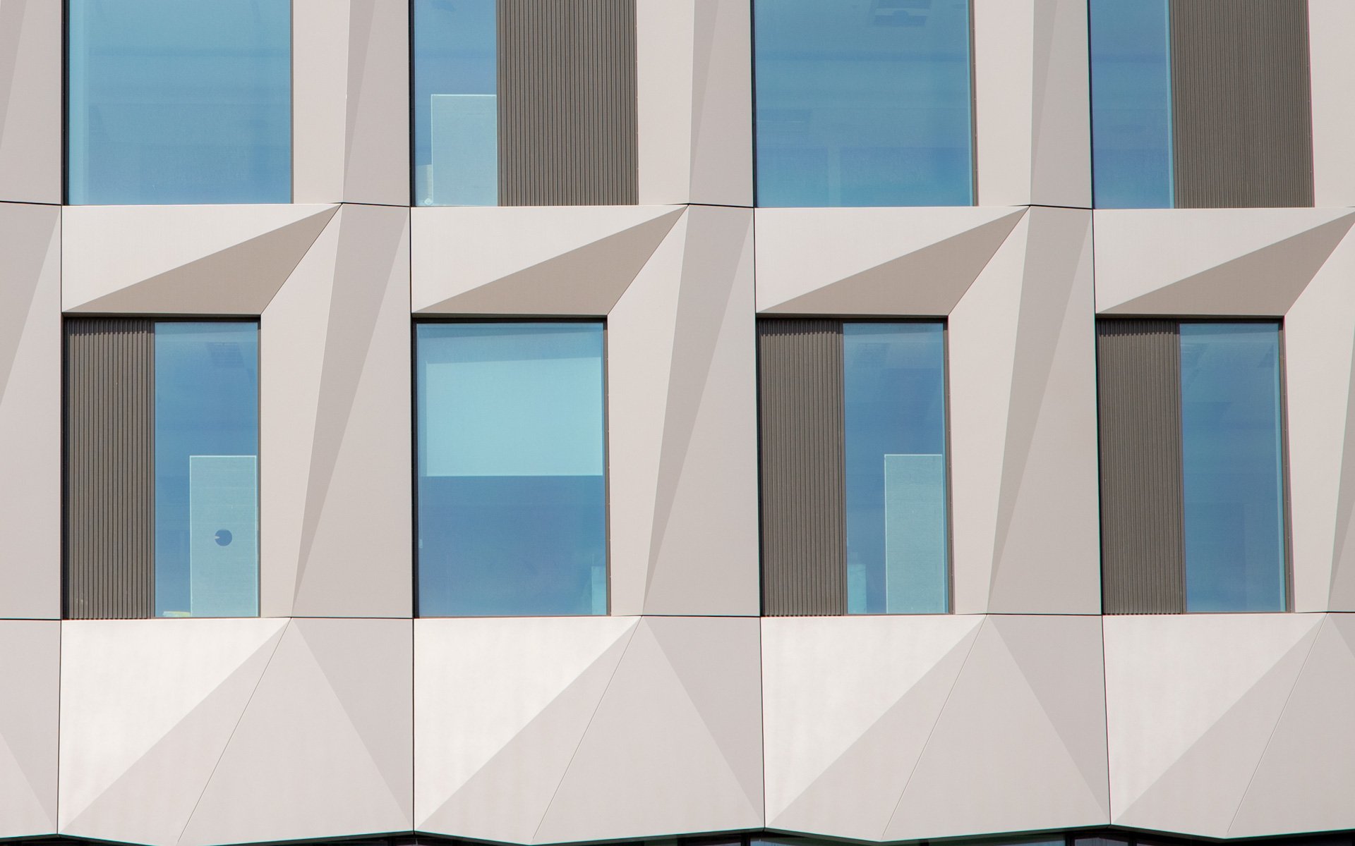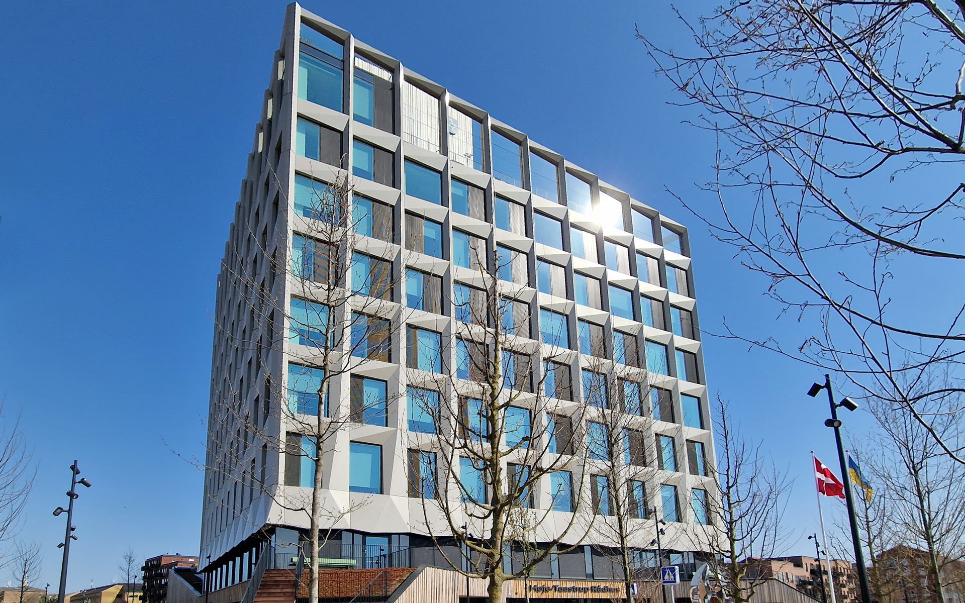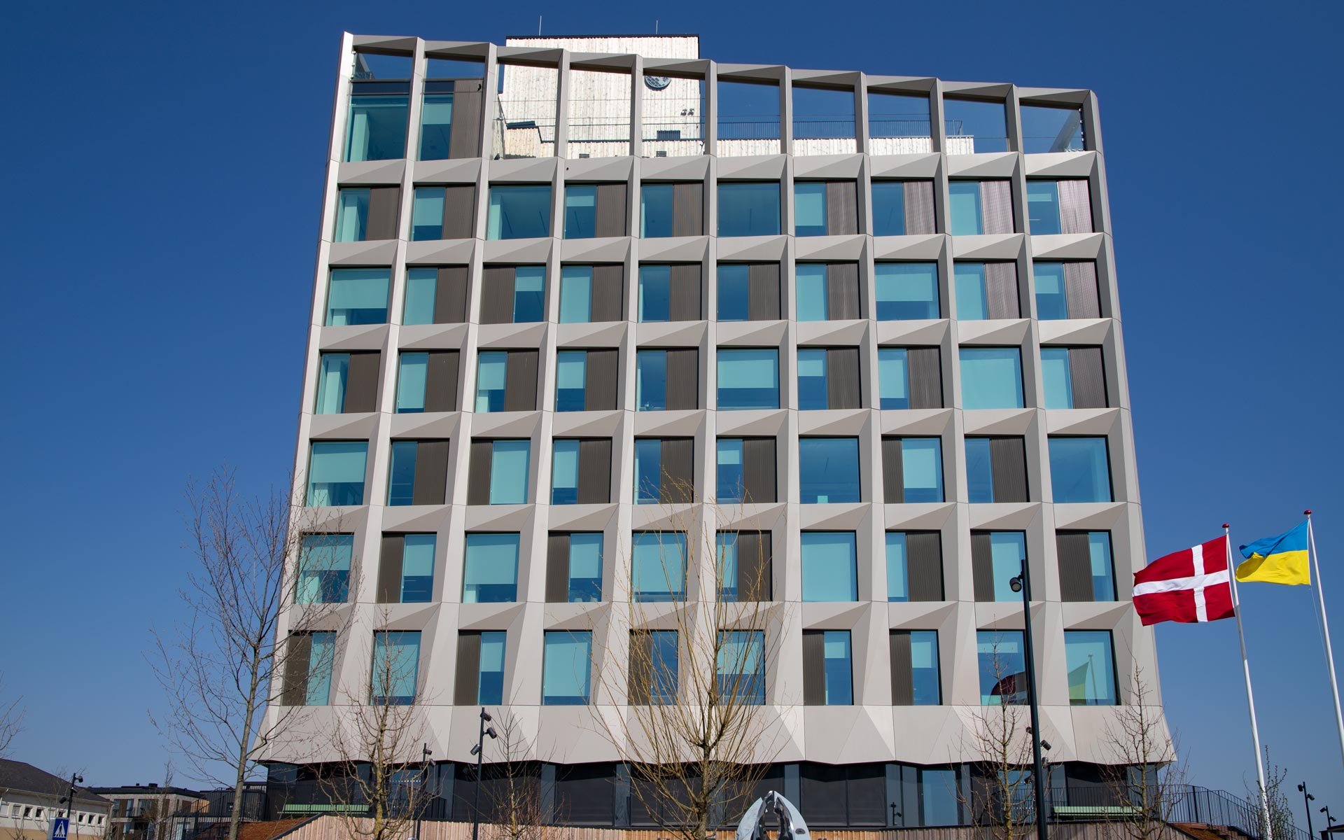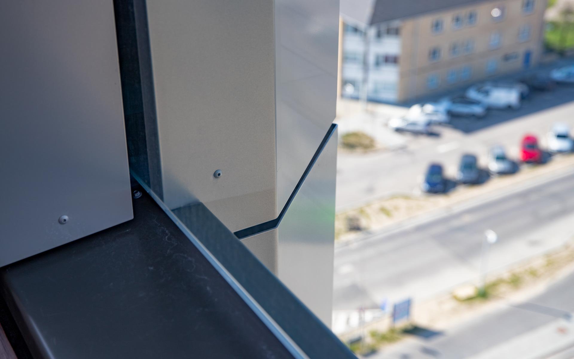 The project is executed with floor-height prefabricated, modular facade elements in the HansenUnitAl system with profile dimensions adapted to the static requirements. Hansen UnitAl® has been tested at the Technological Institute and CE marked in accordance with applicable legislation, EN 13 830 Curtain Walling.