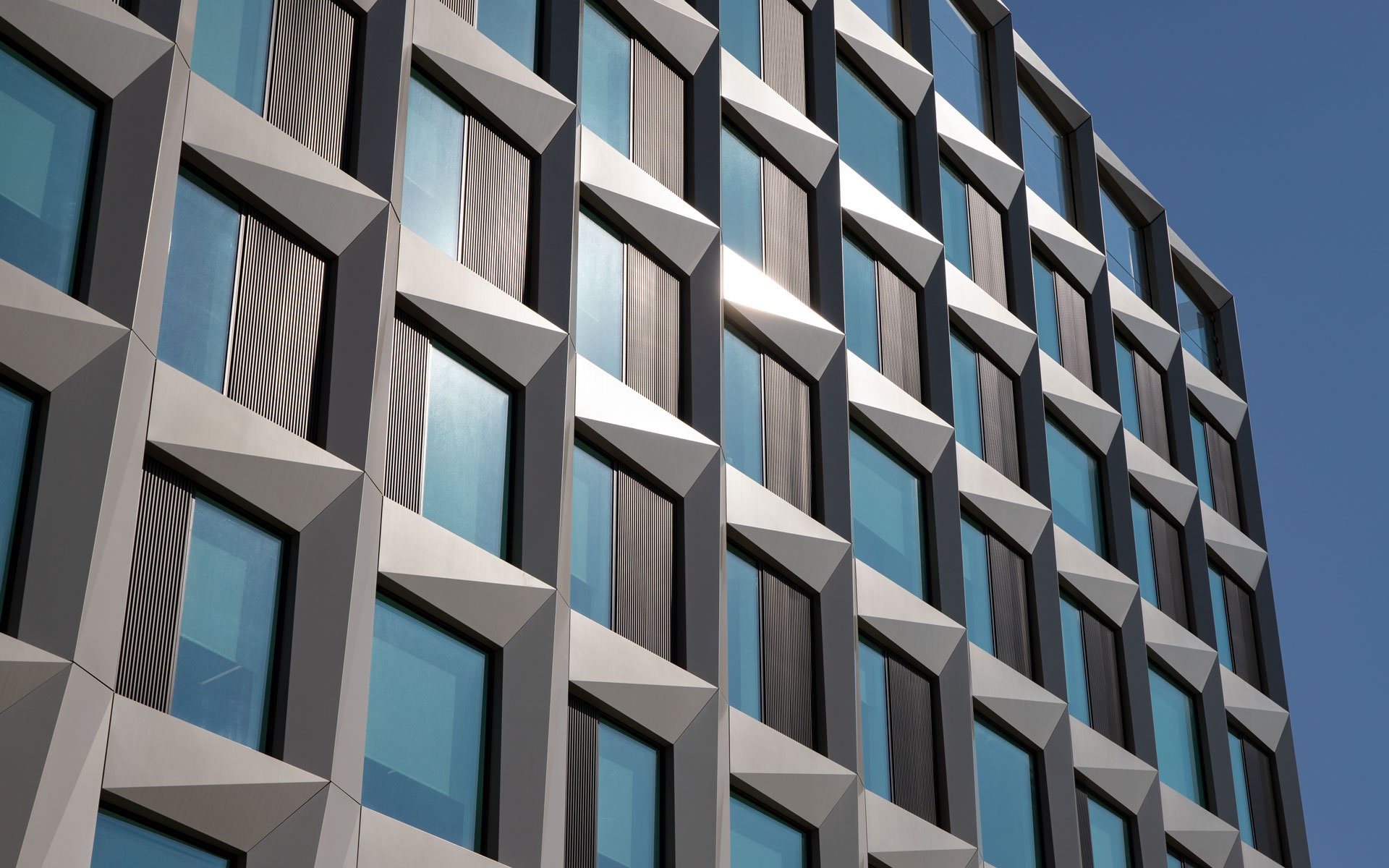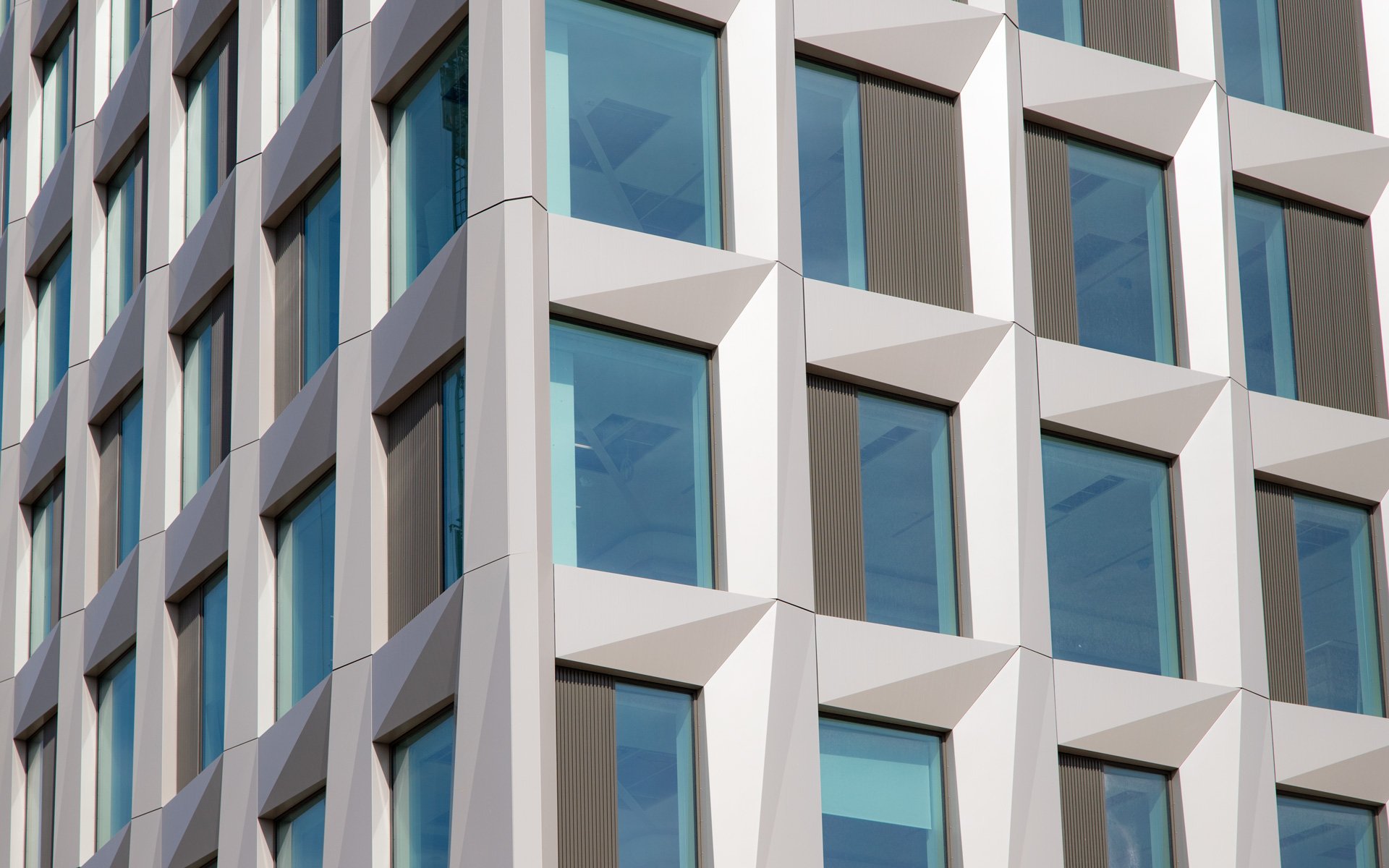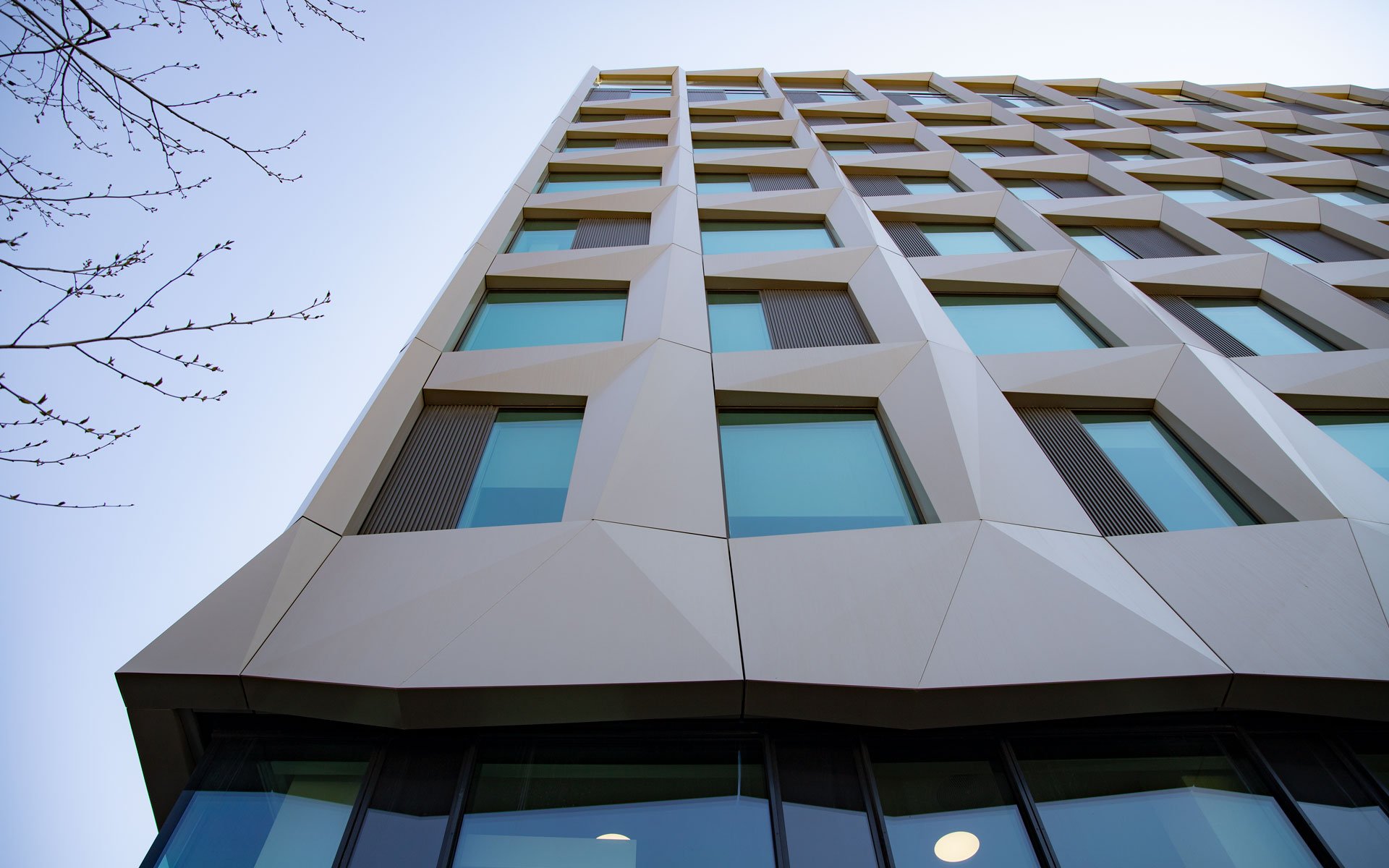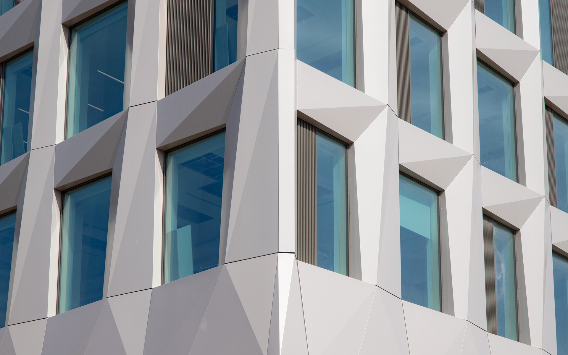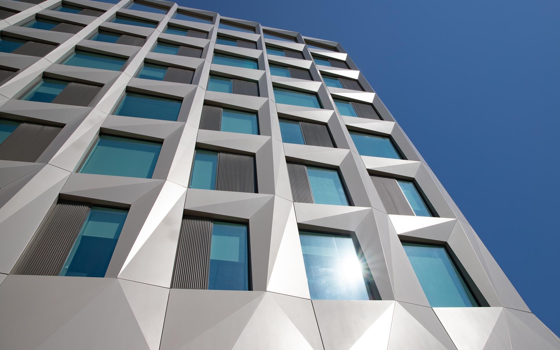The project is executed with floor-height prefabricated, modular facade elements in the HansenUnitAl system with profile dimensions adapted to the static requirements. Hansen UnitAl® has been tested at the Technological Institute and CE marked in accordance with applicable legislation, EN 13 830 Curtain Walling.