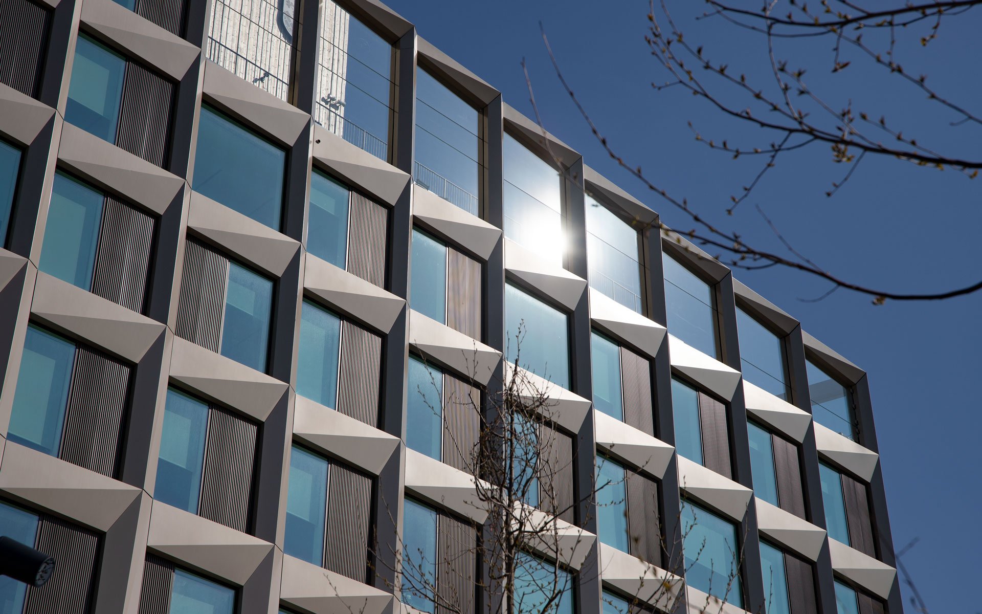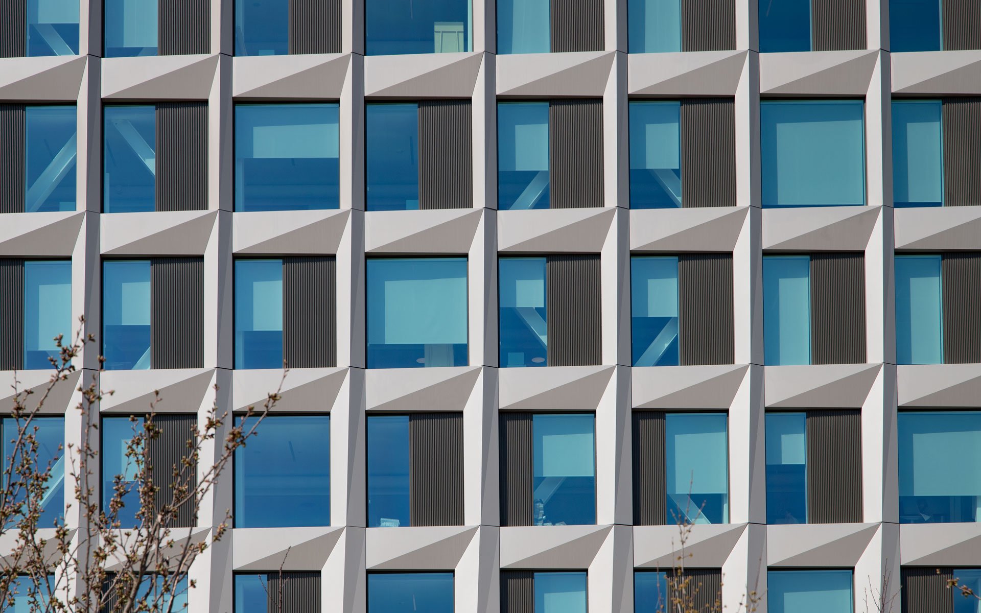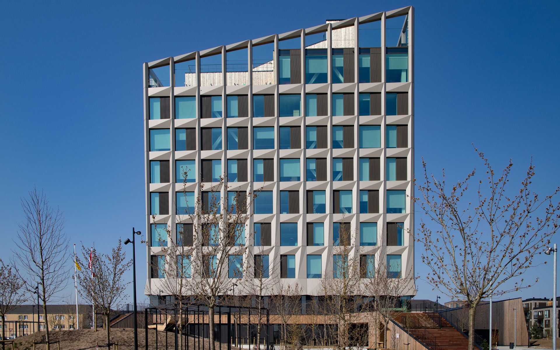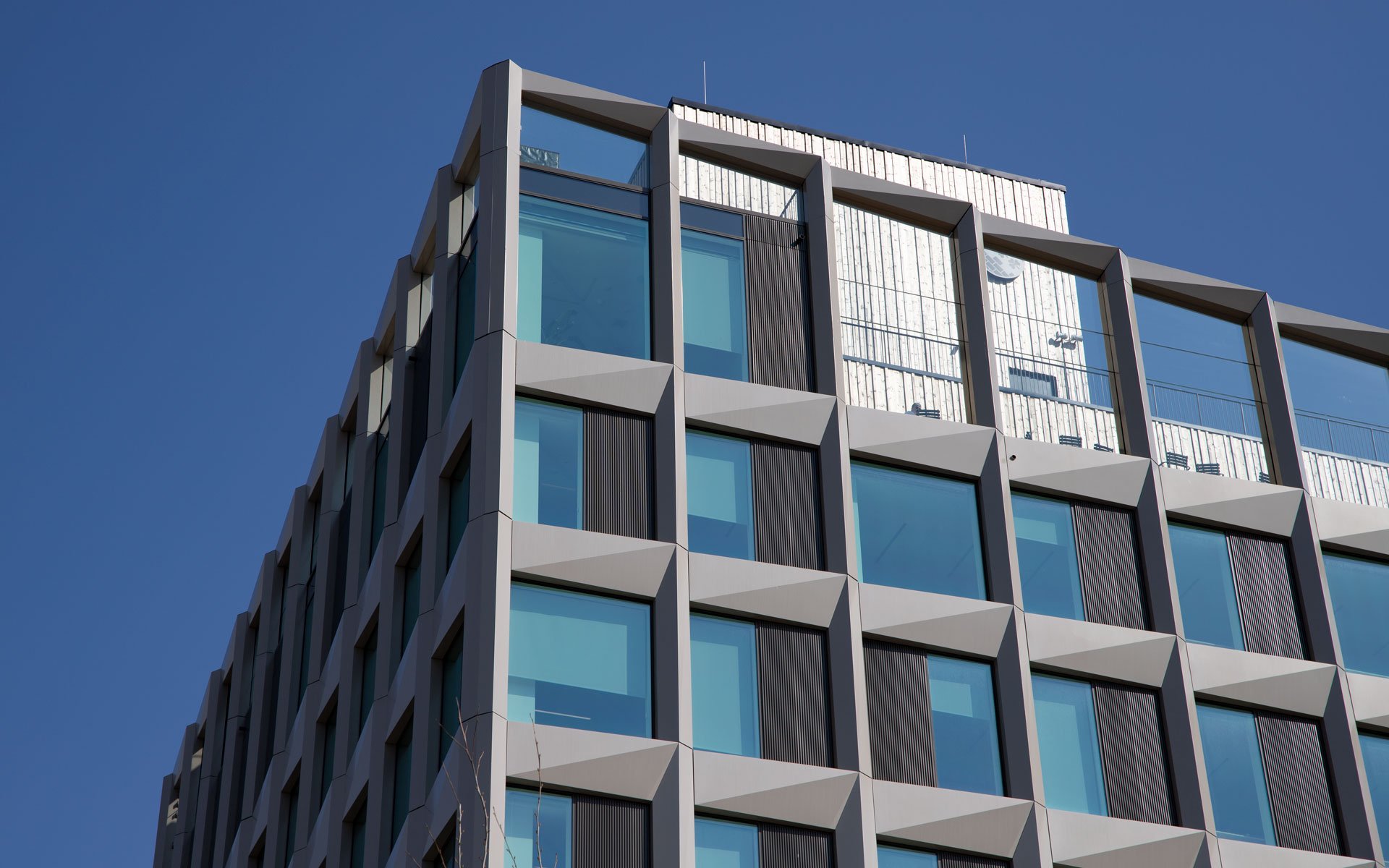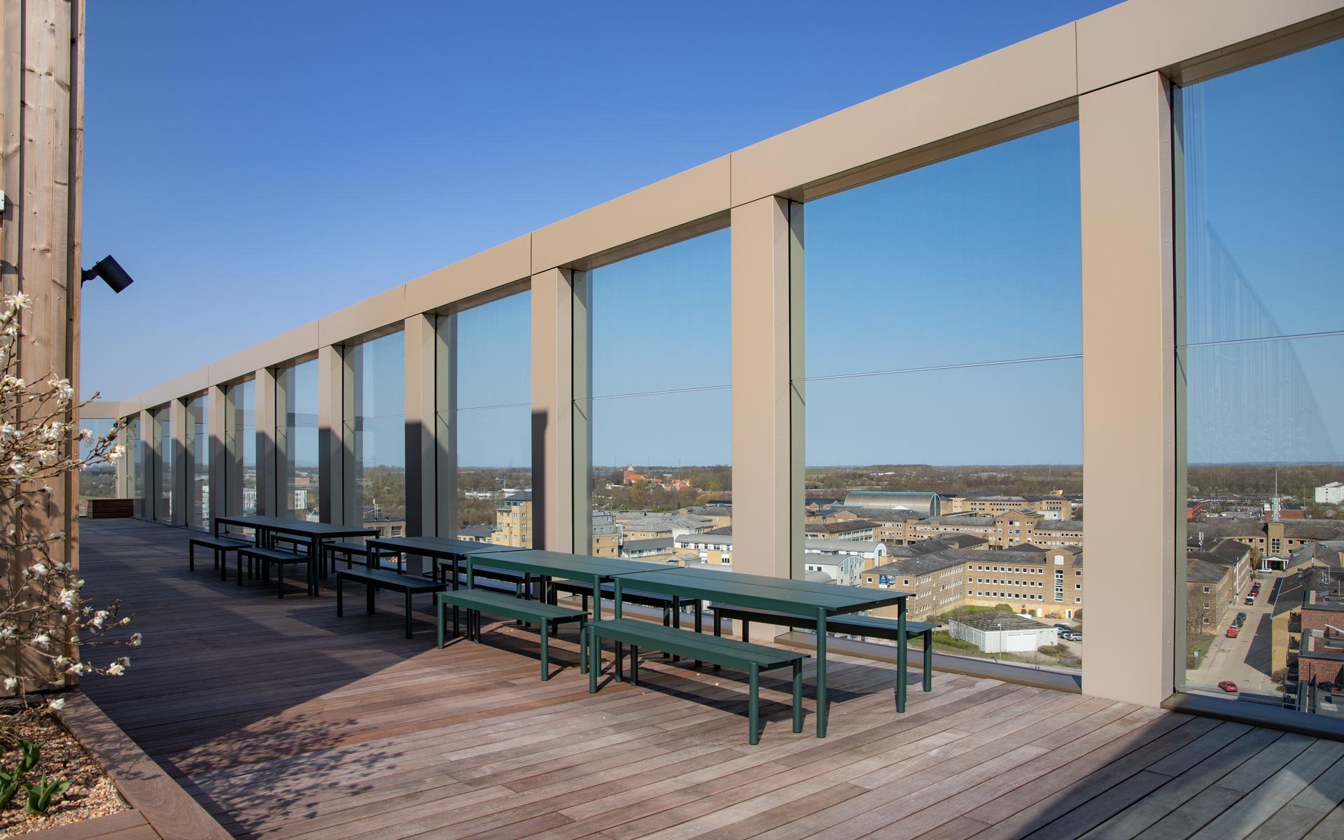 The project is executed with floor-height prefabricated, modular facade elements in the HansenUnitAl system with profile dimensions adapted to the static requirements. Hansen UnitAl® has been tested at the Technological Institute and CE marked in accordance with applicable legislation, EN 13 830 Curtain Walling.