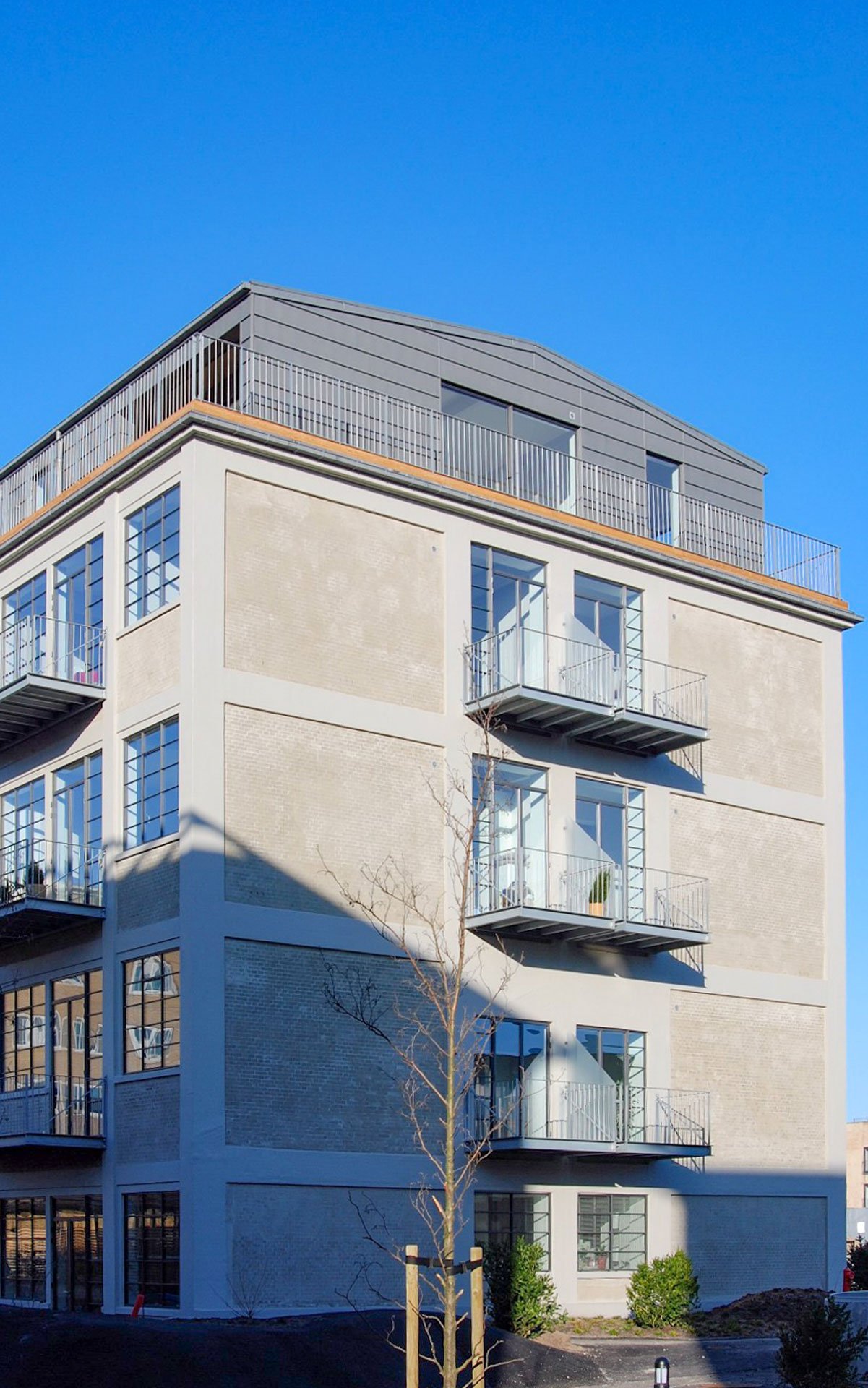 The factory buildings where Nimbus Motorcycles and Nilfisk Vacuum Cleaners were previously produced have been converted into large New Yorker apartments.
