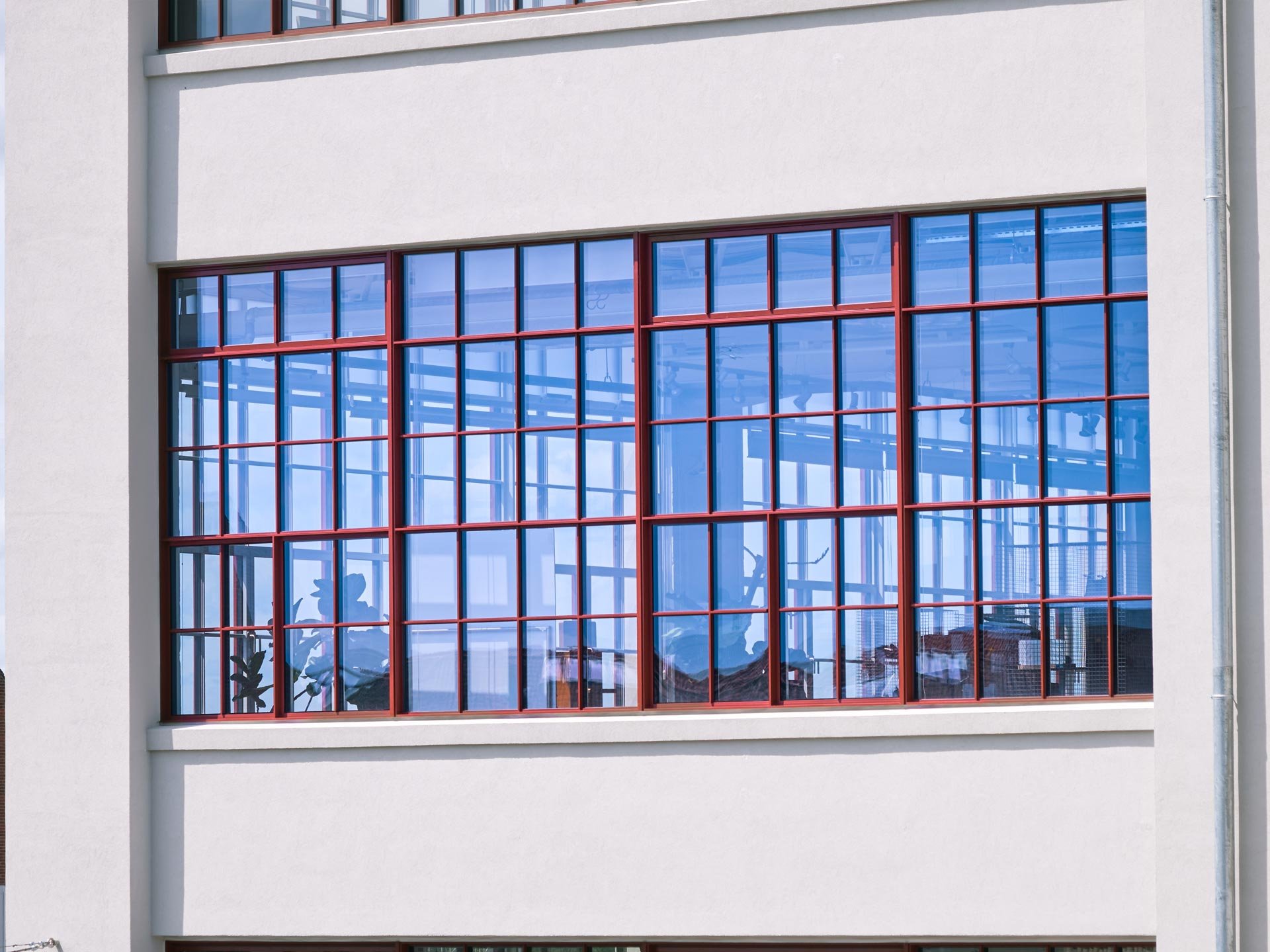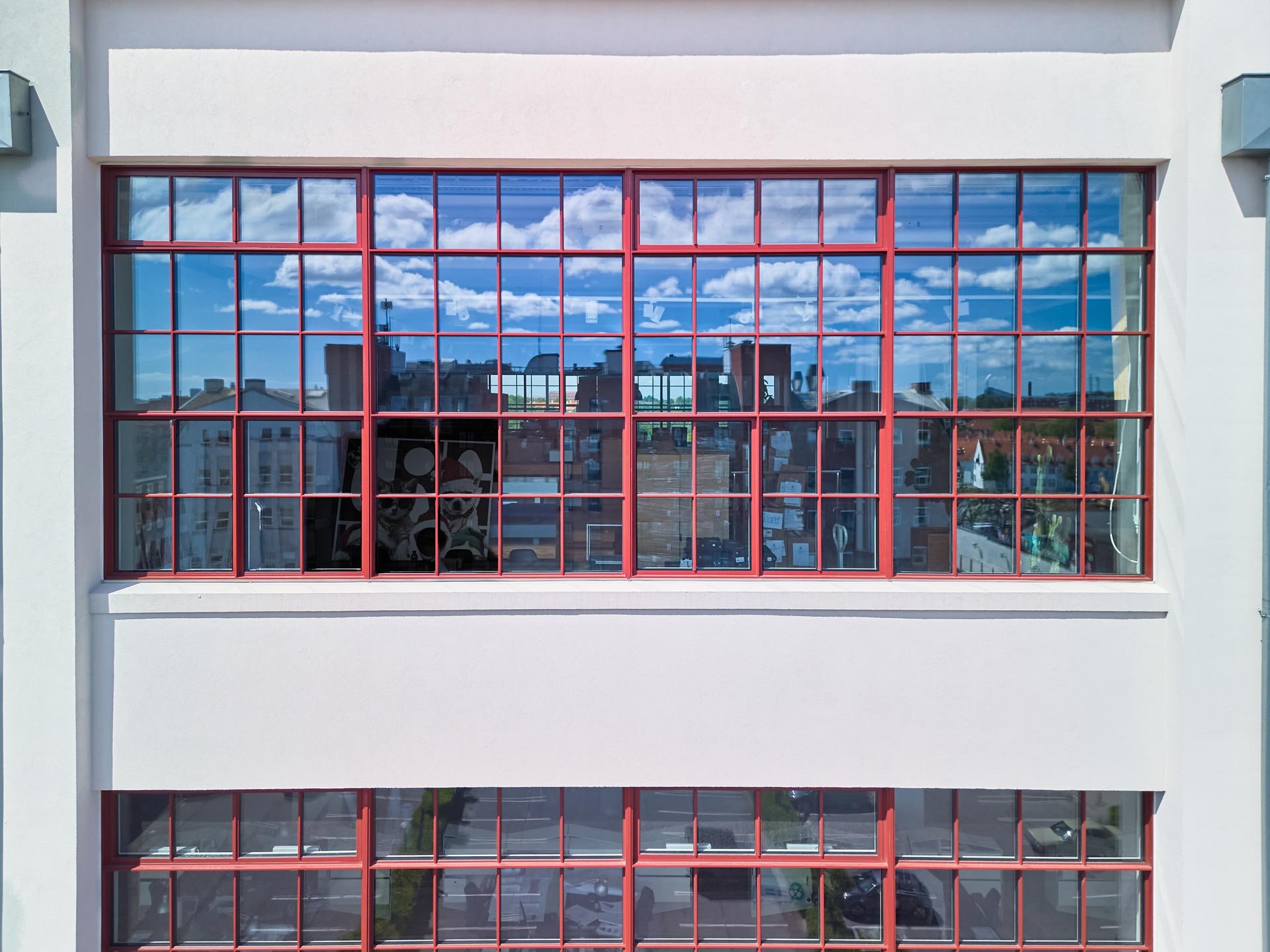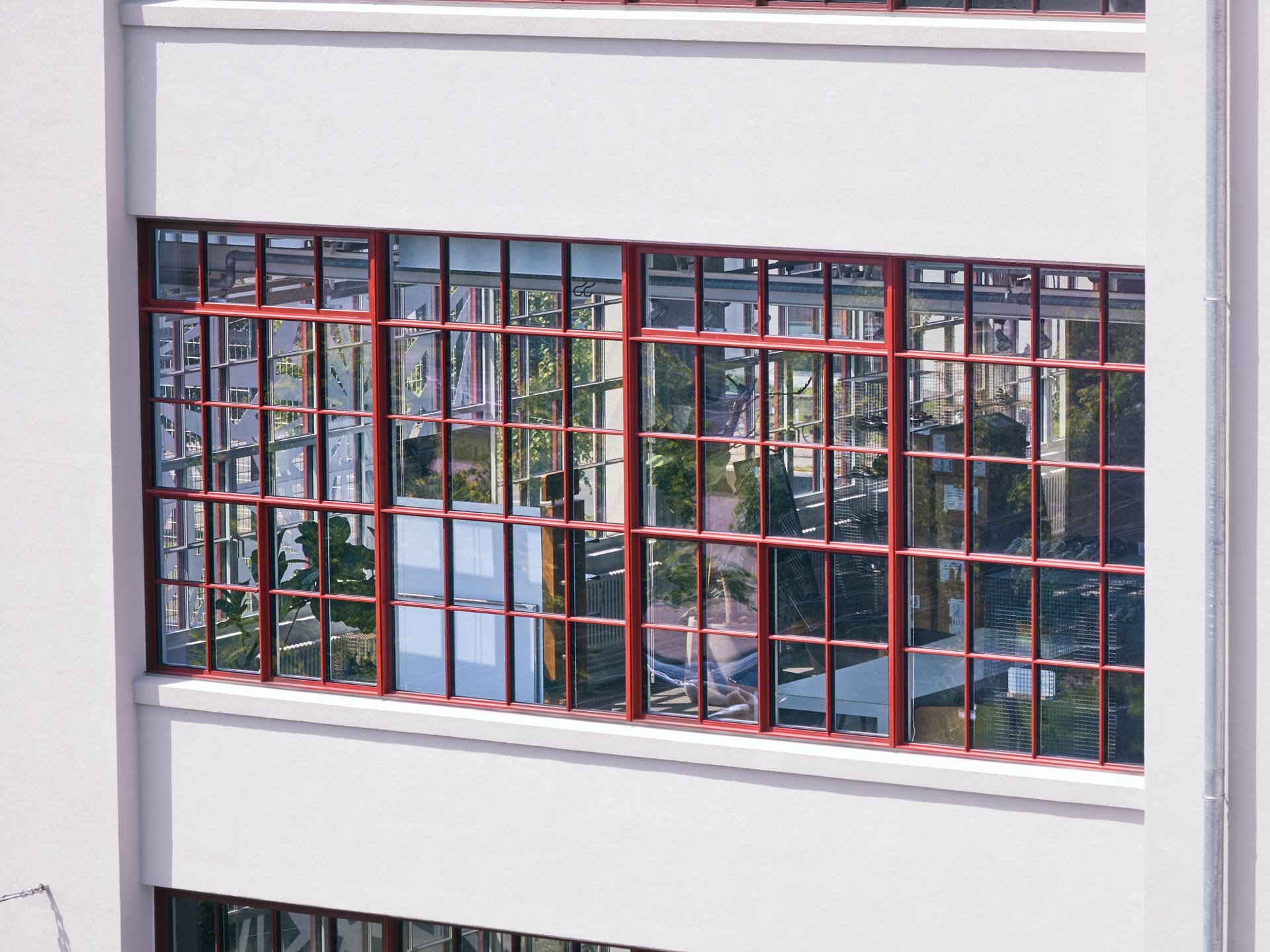 The slim aluminium profiles continue the building’s industrial aesthetic, originally characterised by cast iron windows — now delivered with modern insulation performance, comfort, and daylight access.