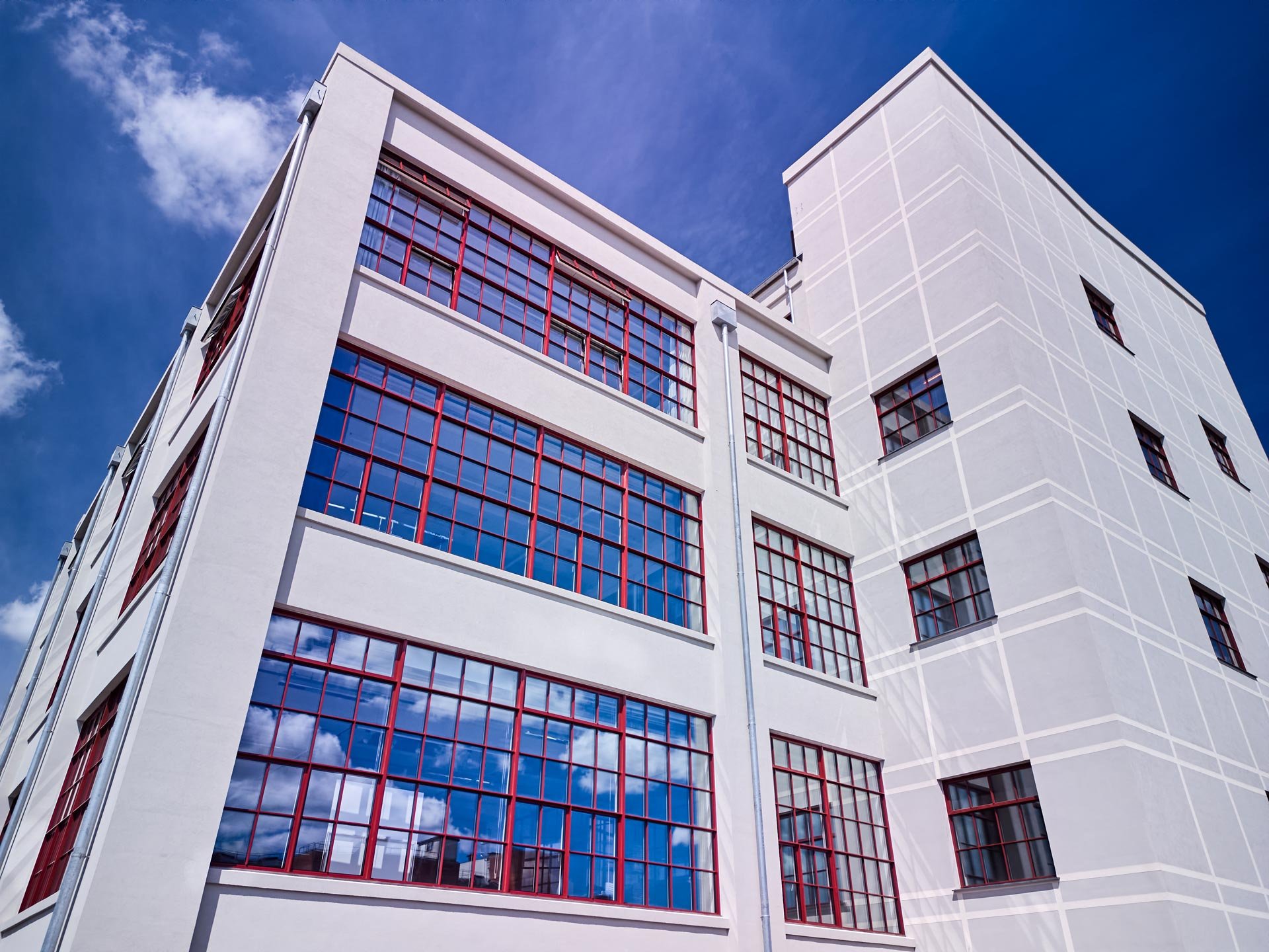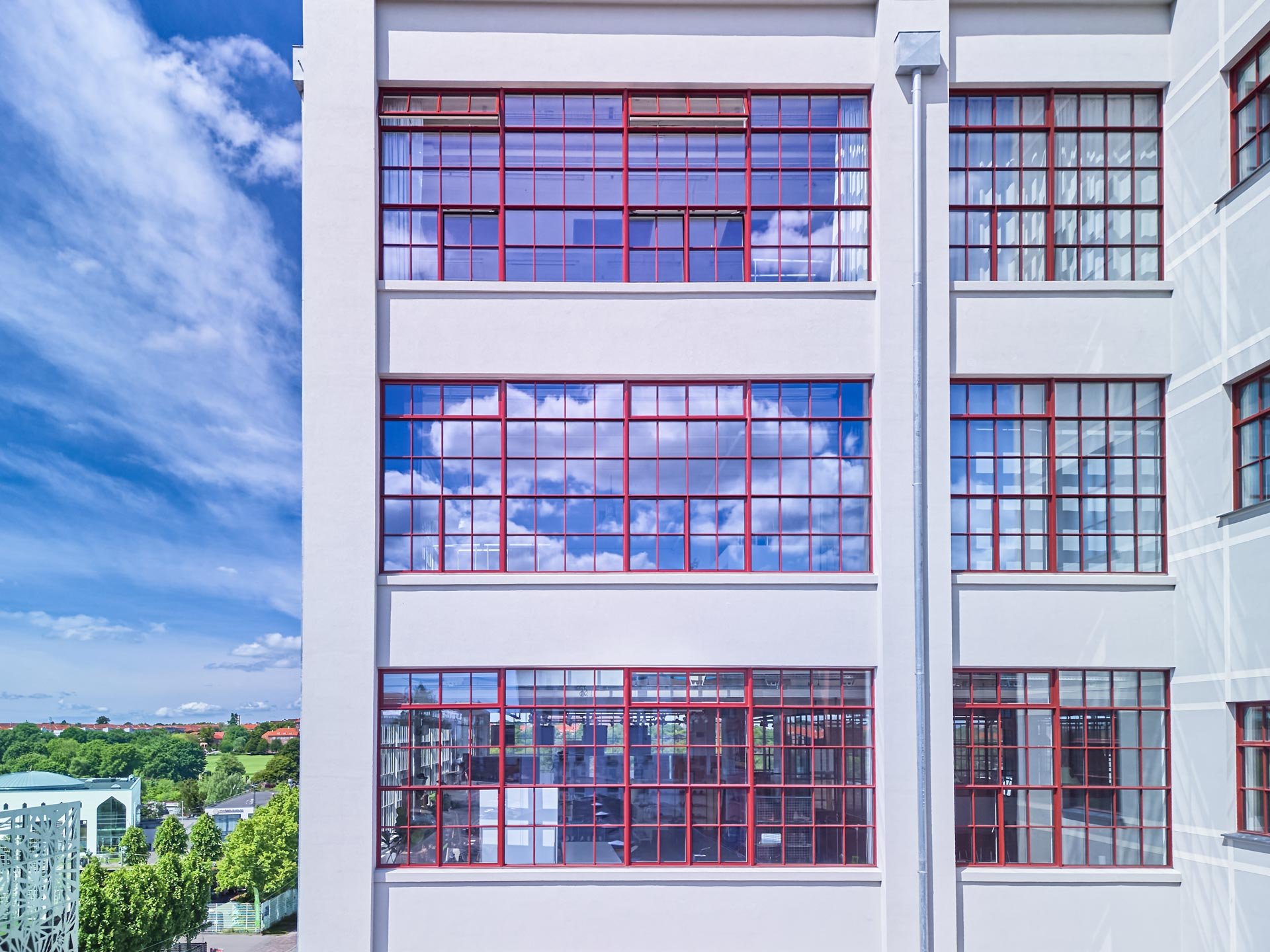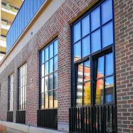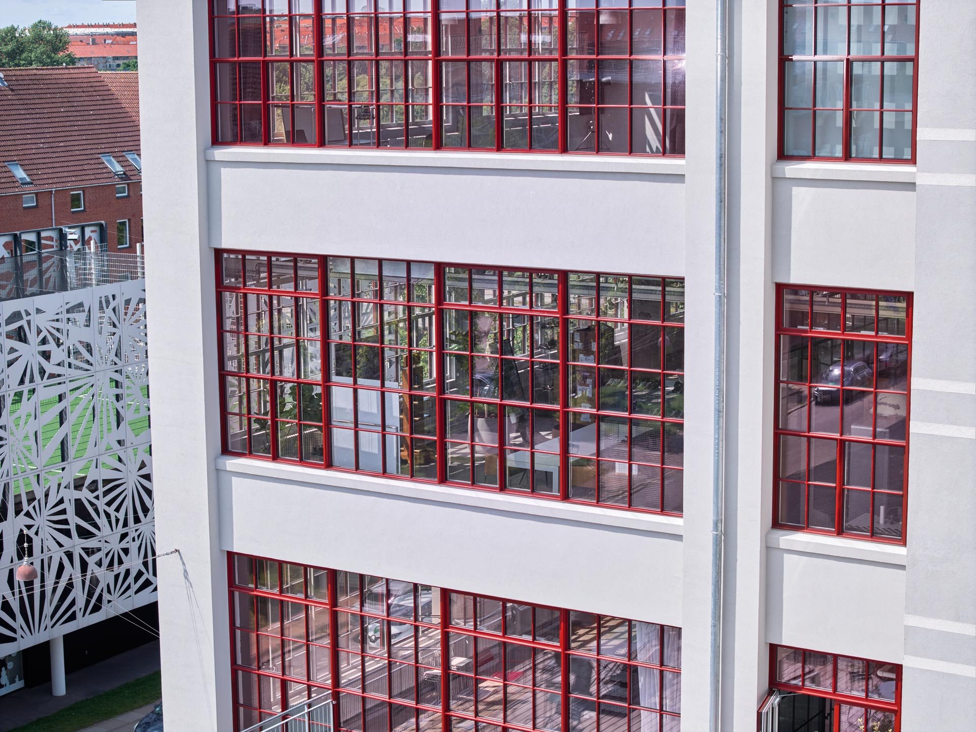 The slim aluminium profiles continue the building’s industrial aesthetic, originally characterised by cast iron windows — now delivered with modern insulation performance, comfort, and daylight access.