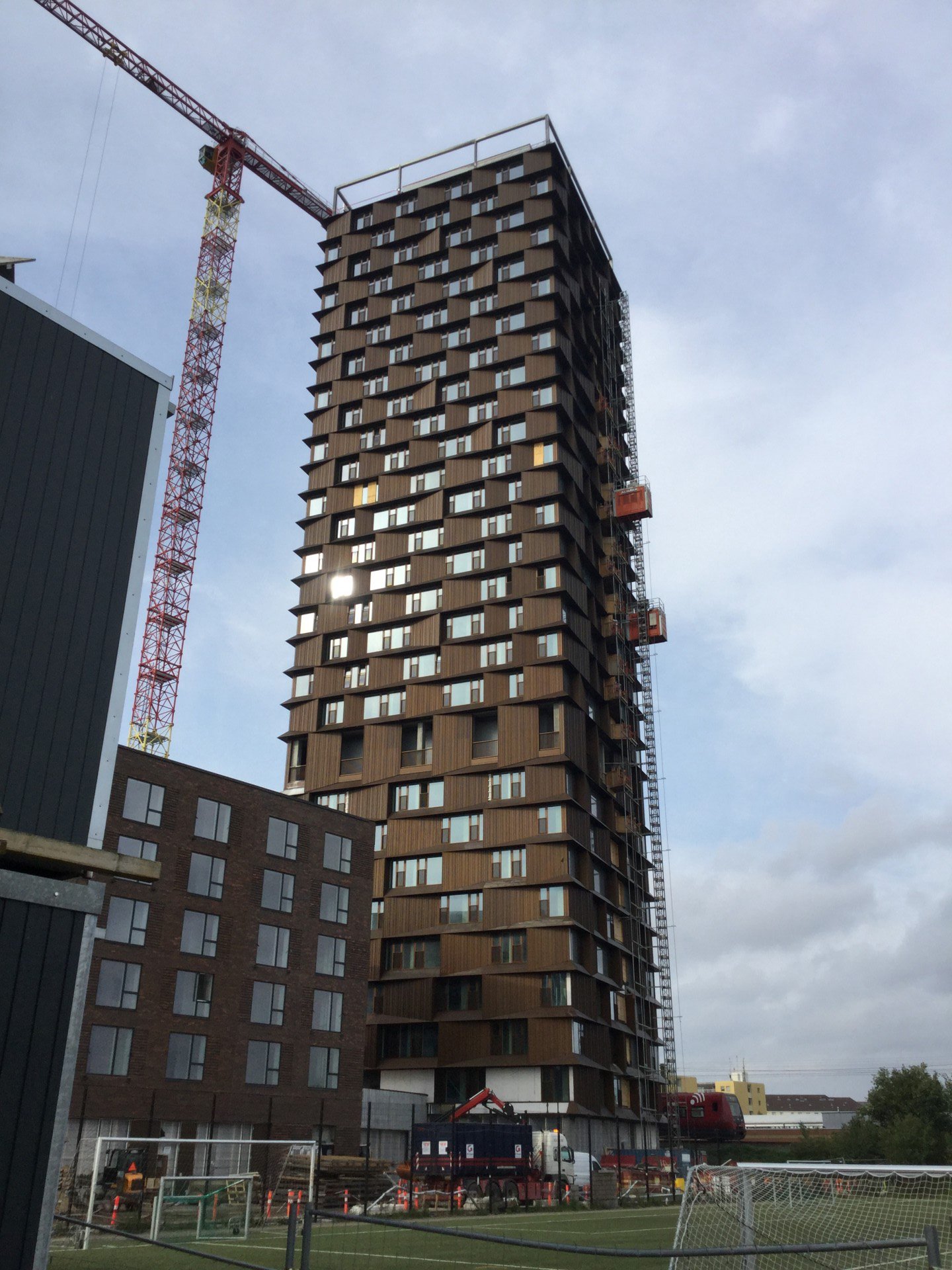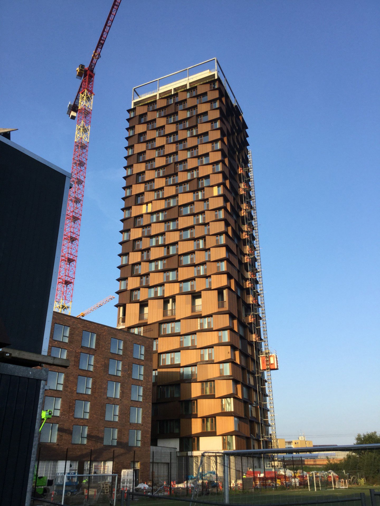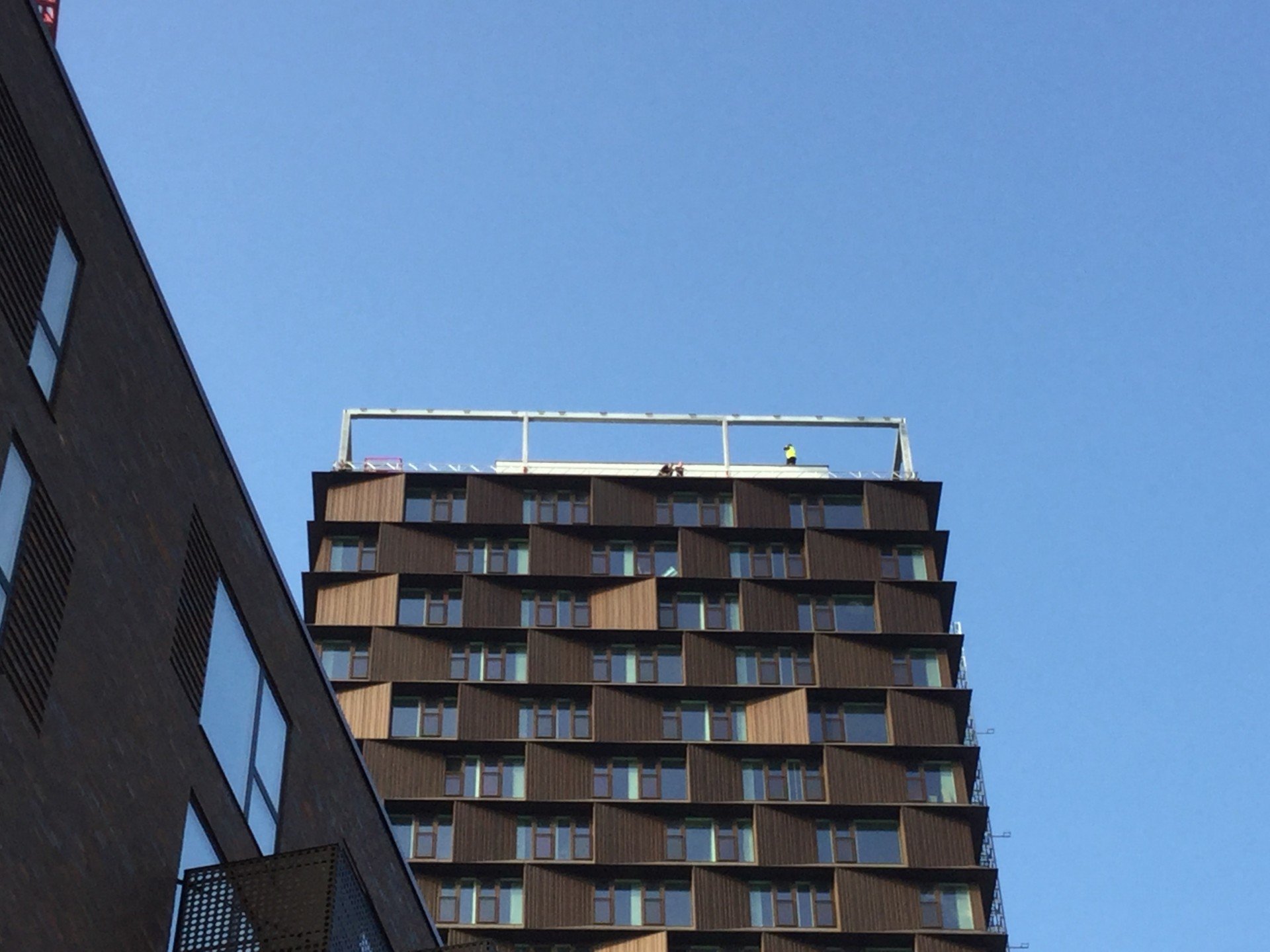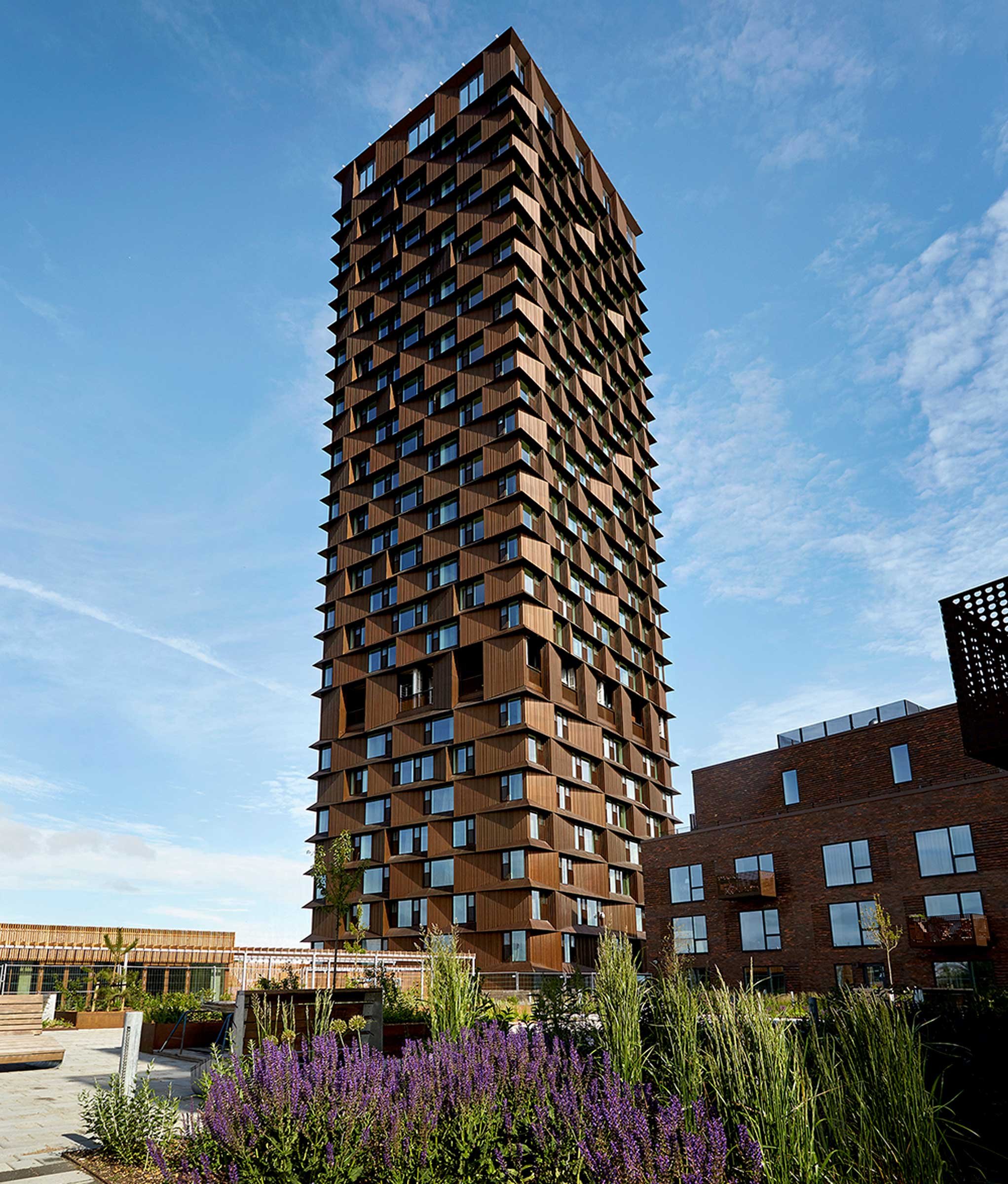 The development consists of seven point blocks, each containing 11 student residences on each floor, as well as a 29-story high tower with Copenhagen's highest publicly accessible observation platform.